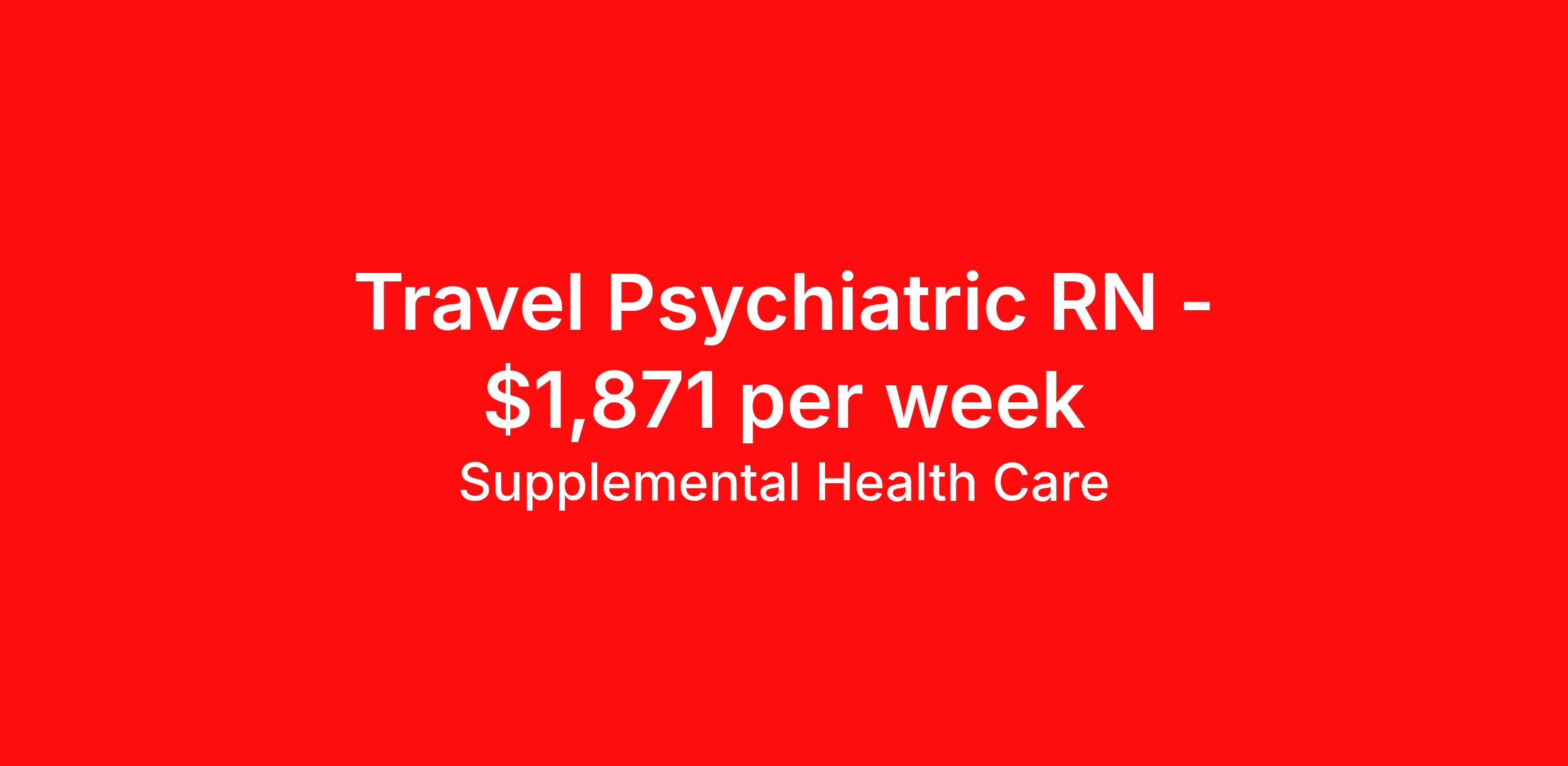 Supplemental Health Care is seeking a travel nurse RN Psychiatric for a travel nursing job in Manchester, Connecticut. Job Description & Requirements Specialty: Psychiatric Discipline: RN Start Date: ASAP Duration: 13 weeks 40 hours per week Shift: 8 hours Employment Type: Travel Job Description: Supplemental Health Care is hiring Psychiatric Registered Nurses for contract assignments at partnering hospitals in Manchester, Connecticut. Whether you’re looking to travel or stay local, we’re committed to helping Psych RNs find the right fit with top hospitals across the country. With more than 40 years of experience in healthcare staffing, Supplemental Health Care offers reliable support, competitive pay, and great benefits every step of the way. Qualifications: Connecticut RN License American Health Association BLS 1-2 years of recent Psychiatric nursing experience Non-violent intervention course (CPI) Psych RN Contract Details: $1,700 - $1,871 per week* PM shift available 13-week contract with possibility to extend Provide care for patients with mental illness or addiction. Assess, diagnose, administer medication, provide wound care, and manage other treatments for patients. Identify risk factors and educate or intervene as necessary Apply today to get started with this Psych RN contract opportunity, or talk to our team about the full range of Registered Nurse opportunities available. What We Offer: Full medical, dental, vision, life, and even pet insurance! Round the clock support. No matter where you are or what time it is, Supplemental Health Care is standing by. SHC's Share the Care referral program is the most dynamic, profitable referral program in the industry. 401(k) Retirement Savings Program with a wide range of investment options. Discounted and free online access to CEU courses through Supplemental University. Please speak with a recruiter for details. Supplemental Health Care is an Equal Opportunity Employer. All candidates, including veterans and those with disabilities, are encouraged to apply. SHC will consider for employment qualified applicants with criminal histories in a manner consistent with the requirements of applicable local, state, or federal law. To learn more, visit www.shccares.com/eeo Supplemental Health Care Job ID 1467732. Pay package is based on 8 hour shifts and 40 hours per week (subject to confirmation) with tax-free stipend amount to be determined. Posted job title: Registered Nurse - Psych About Supplemental Health Care At Supplemental Health Care, a simple belief in the power of caring guides a unique commitment to world-class service in healthcare staffing. For 40 years, we’ve supported talented professionals pursuing their life calling in hospitals, schools, home health, corrections, behavioral health, and other settings. At SHC, we inspire vital connections and enrich lives and inspire better outcomes. As recipients of the Best in Staffing Awards for both Client and Talent, Supplemental Health Care is proud to be among only 2% of staffing companies singled out for the distinction based on the real feedback of our employees and the clients we serve. SHC has also earned The Joint Commission’s Gold Seal of Approval and is named among the Largest Health Care Staffing companies in the United States by Staffing Industry Analysts. We are also thrilled to recognize our very own SLP, Dr. Kelly Byrd as the American Staffing Association 2024 National Staffing Employee of the Year and Health Care Sector All-Star. We’re honored to connect Dr. Byrd to employment, share her incredible story, and support her family literacy nonprofit. For everyone that we serve, SHC is the place where caring hearts thrive. Benefits Referral bonus Benefits start day 1 401k retirement plan Continuing Education Discount program Health savings account