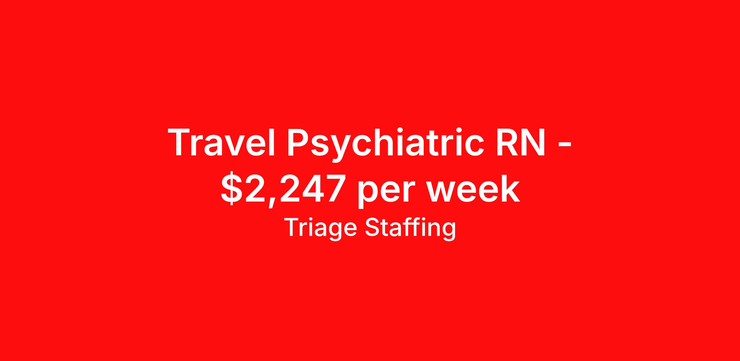Triage Staffing is seeking a travel nurse RN Psychiatric for a travel nursing job in Albany, New York. Job Description & Requirements Specialty: Psychiatric Discipline: RN Start Date: ASAP Duration: 13 weeks 36 hours per week Shift: 12 hours, nights Employment Type: Travel Travel Nursing: Med/Surg Albany Location: Albany Start Date: 3/16/2026 Shift Details: 12H Nights 36 hours per week Length: 13 WEEKS Apply for specific facility details.Med Surg RN Triage Staffing Job ID KLYGV3M4. Posted job title: Nursing: Med/Surg About Triage Staffing At Triage, we prefer to be real . Real about expectations—both ours and yours. Real about how a decision you make today could affect your tomorrows. Real about how compensation actually works. Real about how great—or grating—your next supervisor may be. Being real allows everyone at Triage to be ready . Ready to serve you with real honesty. So if that gig near the ocean is really no day at the beach, or that third shift comes with a second-class rate, we tell you. So you can be ready, too. We staff all five major divisions of acute care—nursing, lab, radiology, cardiopulmonary and rehab therapy, offering: - Competitive, custom pay packages - One point of contact for both travelers and facilities (per division) - A reliable recruiter who's got your back throughout your entire assignment - In-house compliance and accounting specialists - A clinical liaison team available 24/7 to offer medical and professional support and career development - A mentoring program that is run and managed by actual clinicians—yeah, you read that right - And more (because of course there’s more) Are we the biggest? No. Are we the best? That’s rather subjective, but we’re trying to be. Will we work like hell to get you as close to your idea of heaven as possible? Yes. Yes, we will. Benefits: Day One comprehensive, nationwide insurance plans for health, vision and dental and life—including a HSA option Day One 401(k) program with employer-matching contributions once eligible Facility cancelling protection—your time is money on and off-the-clock Guaranteed hours Weekly paychecks via direct deposit Earned vacation bonuses for time worked Paid holidays Employee assistance program (EAP)—your mental health is important, too Continuing education, certification and licensing reimbursement Workers comp—because accidents happen Top-rated professional liability insurance Company provided housing options Referral bonus—$750 in your pocket after they’ve completed a 13-week assignment