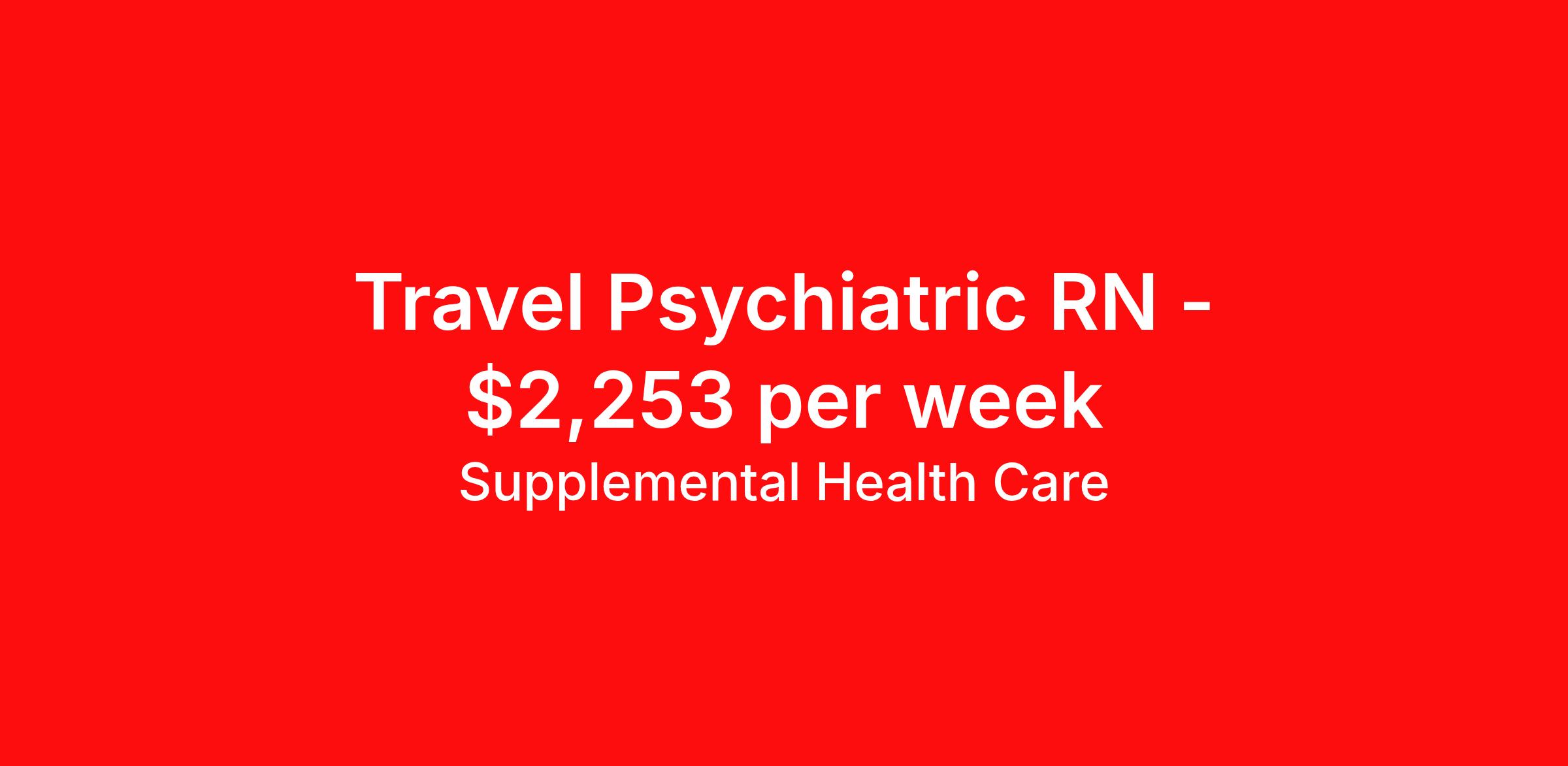 Supplemental Health Care is seeking a travel nurse RN Psychiatric for a travel nursing job in Brooklyn, New York. Job Description & Requirements Specialty: Psychiatric Discipline: RN Start Date: ASAP Duration: 13 weeks 36 hours per week Shift: 12 hours, days Employment Type: Travel Job Description: Supplemental Health Care is hiring Psychiatric Registered Nurses for contract assignments at partnering hospitals in Brooklyn, New York. Whether you’re looking to travel or stay local, we’re committed to helping Psych RNs find the right fit with top hospitals across the country. With more than 40 years of experience in healthcare staffing, Supplemental Health Care offers reliable support, competitive pay, and great benefits every step of the way. Qualifications: New York RN License American Health Association BLS 1-2 years of recent Psychiatric nursing experience Non-violent intervention course (CPI) Psych RN Contract Details: $2,016 - $2,253 per week* AM shift available 13-week contract with possibility to extend Provide care for patients with mental illness or addiction. Assess, diagnose, administer medication, provide wound care, and manage other treatments for patients. Identify risk factors and educate or intervene as necessary Apply today to get started with this Psych RN contract opportunity, or talk to our team about the full range of Registered Nurse opportunities available. What We Offer: Full medical, dental, vision, life, and even pet insurance! Round the clock support. No matter where you are or what time it is, Supplemental Health Care is standing by. SHC's Share the Care referral program is the most dynamic, profitable referral program in the industry. 401(k) Retirement Savings Program with a wide range of investment options. Discounted and free online access to CEU courses through Supplemental University. Health insurance 401k matching Estimated weekly payment may include both taxable wages and tax-free reimbursements for meals, housing, and incidentals. Please speak with a recruiter for details. Supplemental Health Care is an Equal Opportunity Employer. All candidates, including veterans and those with disabilities, are encouraged to apply. SHC will consider for employment qualified applicants with criminal histories in a manner consistent with the requirements of applicable local, state, or federal law. To learn more, visit www.shccares.com/eeo Supplemental Health Care Job ID 1472791. Pay package is based on 12 hour shifts and 36 hours per week (subject to confirmation) with tax-free stipend amount to be determined. Posted job title: Registered Nurse - Psych About Supplemental Health Care At Supplemental Health Care, a simple belief in the power of caring guides a unique commitment to world-class service in healthcare staffing. For 40 years, we’ve supported talented professionals pursuing their life calling in hospitals, schools, home health, corrections, behavioral health, and other settings. At SHC, we inspire vital connections and enrich lives and inspire better outcomes. As recipients of the Best in Staffing Awards for both Client and Talent, Supplemental Health Care is proud to be among only 2% of staffing companies singled out for the distinction based on the real feedback of our employees and the clients we serve. SHC has also earned The Joint Commission’s Gold Seal of Approval and is named among the Largest Health Care Staffing companies in the United States by Staffing Industry Analysts. We are also thrilled to recognize our very own SLP, Dr. Kelly Byrd as the American Staffing Association 2024 National Staffing Employee of the Year and Health Care Sector All-Star. We’re honored to connect Dr. Byrd to employment, share her incredible story, and support her family literacy nonprofit. For everyone that we serve, SHC is the place where caring hearts thrive. Benefits Referral bonus Benefits start day 1 401k retirement plan Continuing Education Discount program Health savings account