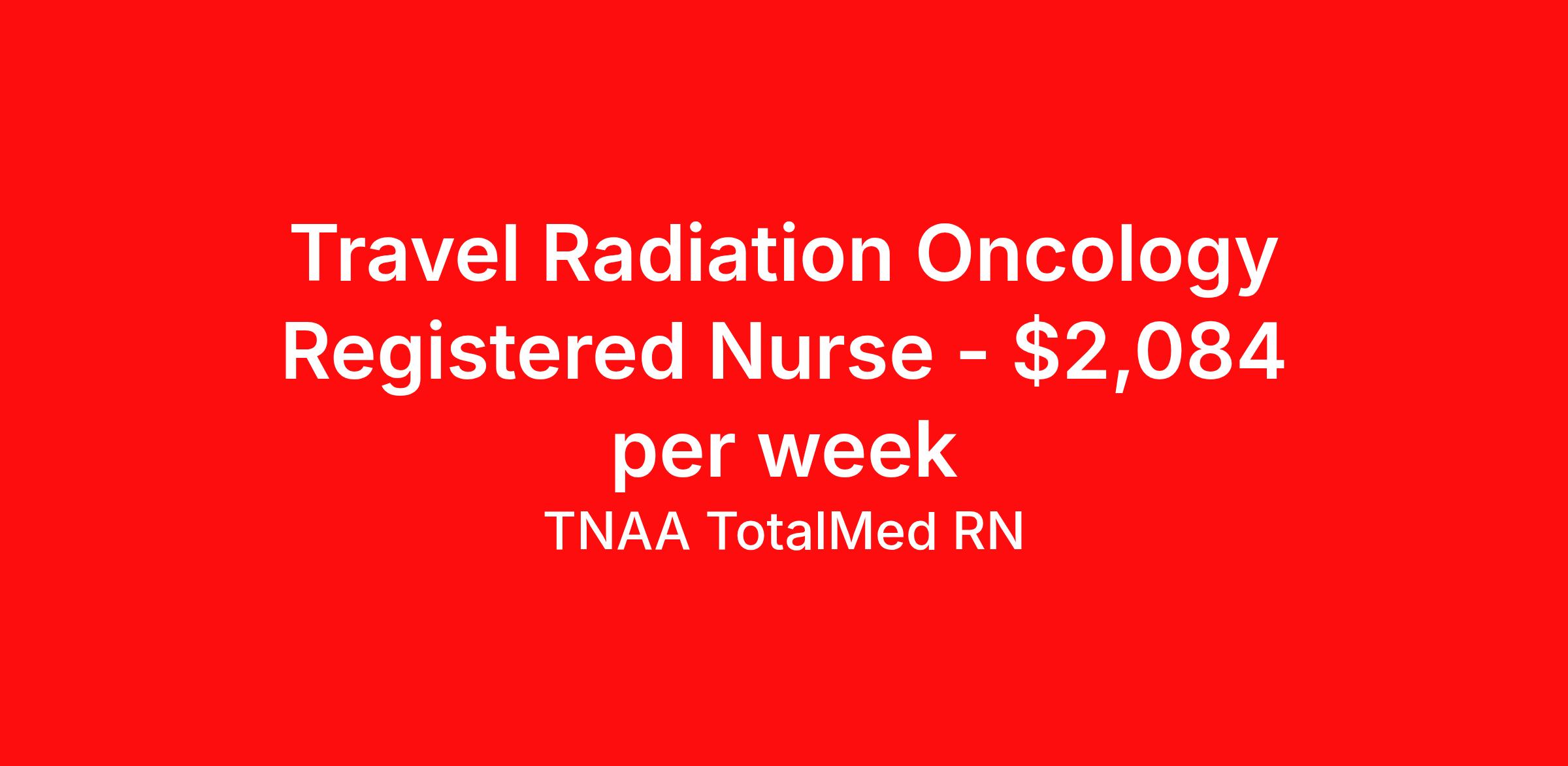TNAA TotalMed RN is seeking a travel nurse RN Oncology for a travel nursing job in San Francisco, California. Job Description & Requirements Specialty: Oncology Discipline: RN Start Date: 04/20/2026 Duration: 13 weeks 32 hours per week Shift: 8 hours, days Employment Type: Travel We're looking for Radiation Therapists for an immediate travel opening in San Francisco, CA. The right Radiation Therapist should have 1 year of experience. Read below for more requirements. As a Radiation Therapist, you will be responsible for administering radiation treatments to patients as prescribed by a radiation oncologist. You'll play a critical role in the treatment of cancer and other diseases, ensuring patient safety, comfort, and accuracy throughout the therapy process. As a Radiation Therapist, you should be prepared to perform the following tasks: Administer prescribed doses of radiation to specific body parts using radiation therapy equipment Position patients accurately and comfortably for each treatment session Verify treatment settings and patient identity before delivering therapy Monitor patients during procedures to ensure safety and comfort Use imaging technology (e.g., CT, X-rays) to guide accurate treatment delivery Document treatment details and maintain accurate patient records Communicate effectively with physicians, dosimetrists, and other team members Educate patients and families on procedures, side effects, and care during treatment Inspect, maintain, and calibrate radiation therapy equipment regularly Follow strict radiation safety protocols for both patients and staff The ideal candidate must have at least one year of experience as a Radiation Therapist. Additionally, they should possess a current BLS certification and hold the ARRT (T) National Certification. State licensure may be required. Radiation Therapists should be able to stand for long periods, work precisely with complex equipment, and offer compassionate care in emotionally sensitive situations. Requirements*: BLS, ARRT (T), 2 Years * Additional certifications may be required before beginning an assignment. TotalMed Travel Job ID 1396638. Pay package is based on 8 hour shifts and 32 hours per week (subject to confirmation) with tax-free stipend amount to be determined. Posted job title: Therapy - Ther RAD - Travel About TNAA TotalMed RN TotalMed is a Top Ten, travel nursing and healthcare staffing agency with the mission of igniting purpose in healthcare. The organization staffs nurses, therapists, pharmacists, and other clinicians of all specialties in all 50 states. They offer local and travel jobs and match caregivers with the right organization to assist both facilities and patients. As an organization, they focus on putting highly-skilled staff into facilities to ensure adequate staffing for a better patient experience. TotalMed specializes in recruiting and placing healthcare professionals in travel, PRN, and permanent positions across the country in Nursing and Allied Health. Throughout 2020, the organization filled roles at even the most short-staffed facilities during the most challenging time in healthcare. By matching the right travel healthcare professional with the right organization, TotalMed continues to offer a lifeline to facilities and their patients. Benefits Weekly pay Guaranteed Hours Continuing Education 401k retirement plan Sick pay Wellness and fitness programs Referral bonus Employee assistance programs Medical benefits Dental benefits Vision benefits Benefits start day 1