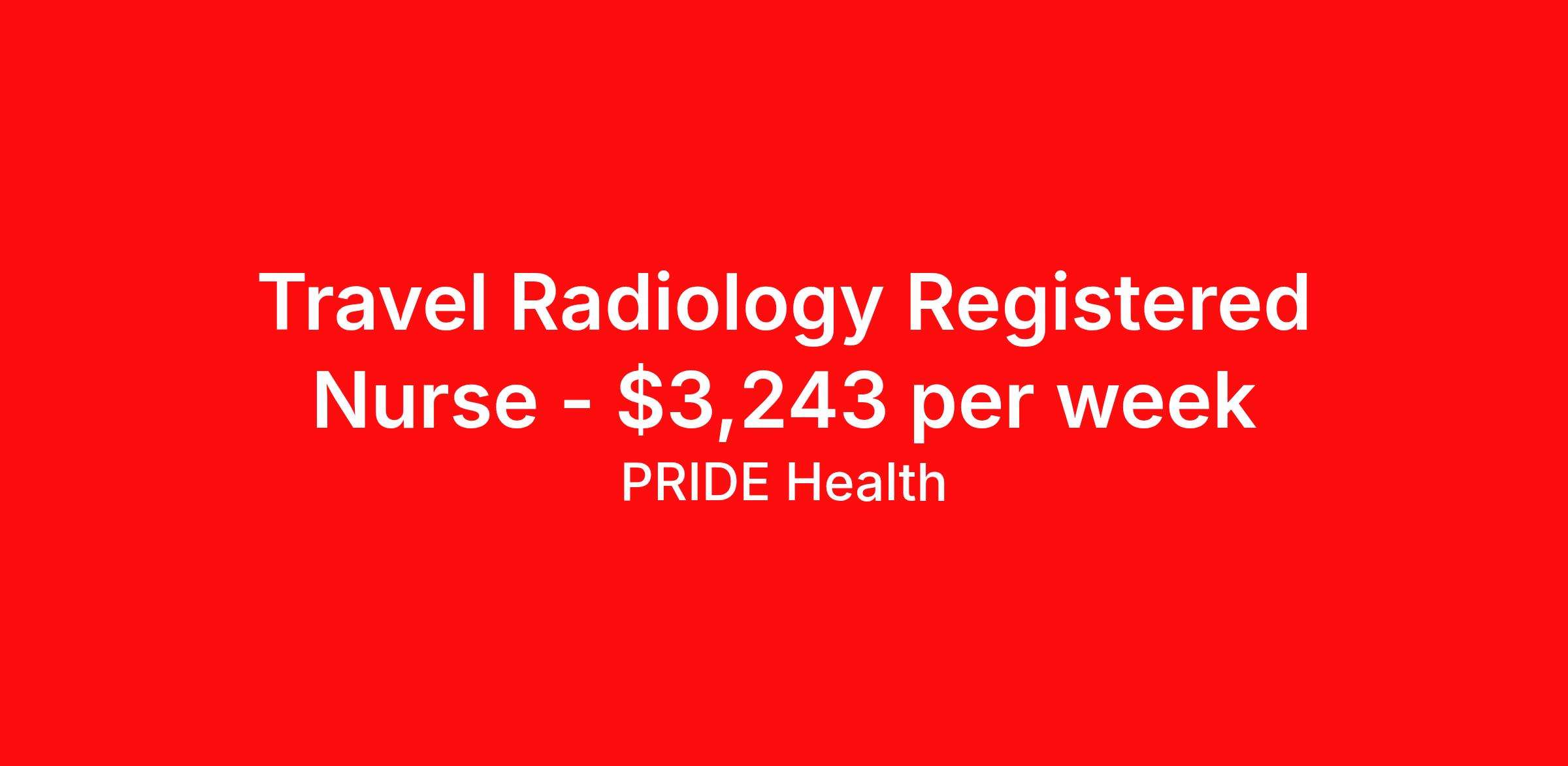 Travel Radiology Registered Nurse - $3,243 per week