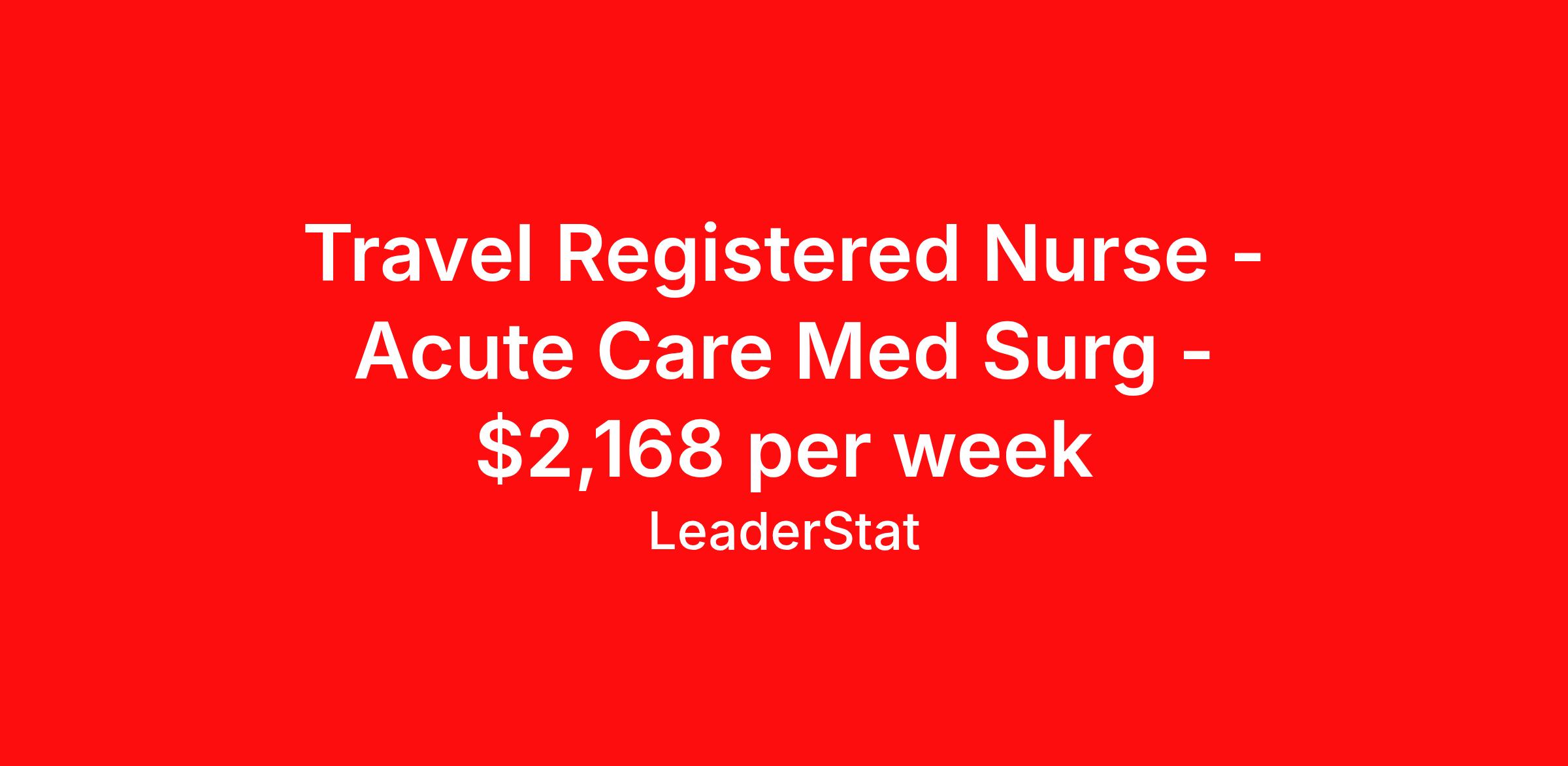 Travel Registered Nurse - Acute Care Med Surg - $2,168 per week