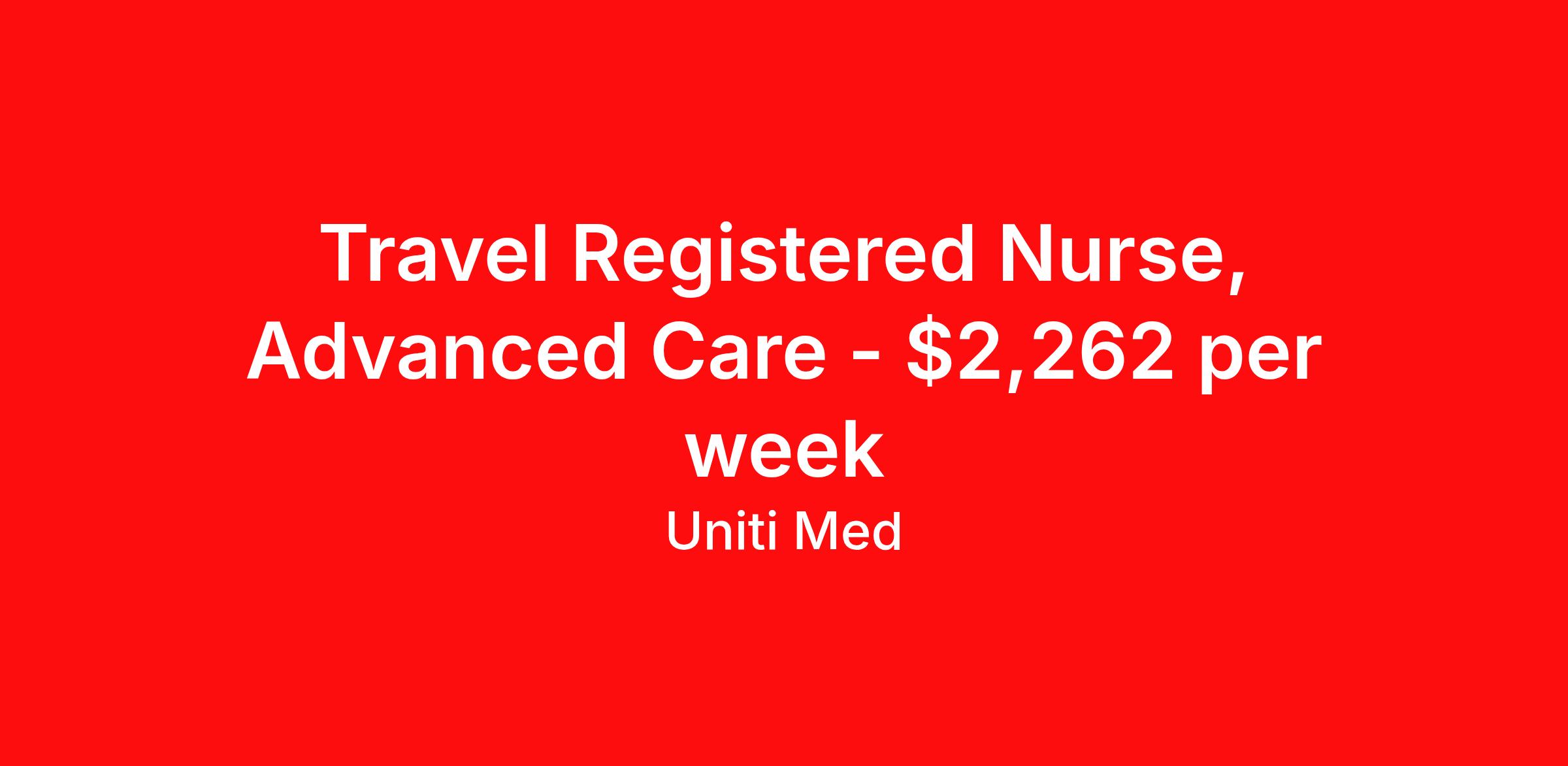 Travel Registered Nurse, Advanced Care - $2,262 per week