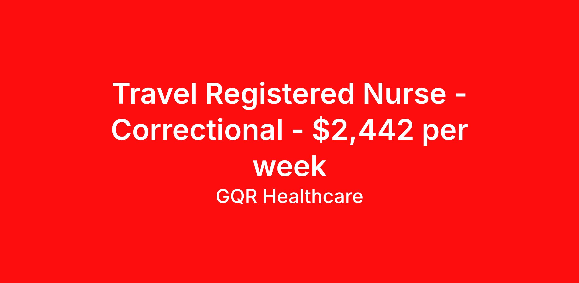 GQR Healthcare is seeking a travel nurse Correctional for a travel nursing job in Palestine, Texas. Job Description & Requirements Specialty: Correctional Discipline: RN Start Date: 04/18/2026 Duration: 13 weeks 48 hours per week Shift: 12 hours, nights Employment Type: Travel Start date: 4/18 Night shift 13 weeks Hours per week: 36/48 - rotations are not guaranteed but 36 hours each week is, must have flexibility $2002 weekly on 36hrs $2422 weekly on 48hrs ($21/hr, $42/OT, $1246 weekly stipend) Must have corrections, Psych, or at least 1 Year of Acute Care or Med Surg experience About GQR Healthcare GQR’s Healthcare team specializes in connecting experts within the industry to highly skilled healthcare professionals across the US market. In the competitive healthcare market, we recognize that the industry’s common goals of improved quality of care and patient outcomes are wholly reliant upon the professionals directly supporting these initiatives. Leveraging our extensive candidate network, we deliver continuity of care for the communities our partners serve to ensure the patient experience is of the highest quality. Through deep market specialization and a unique approach to talent acquisition, GQR Healthcare provides an unparalleled and personalized experience across all medical specialties in nursing and within diverse healthcare platforms across the industry.