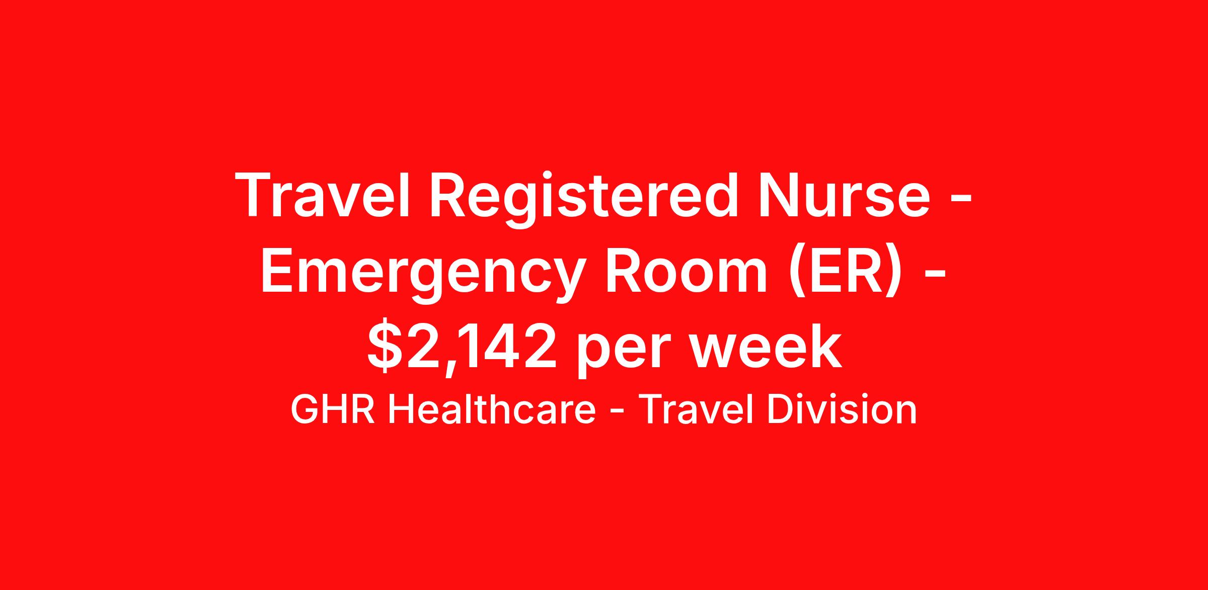 GHR Healthcare - Travel Division is seeking a travel nurse RN ED - Emergency Department for a travel nursing job in Coos Bay, Oregon. Job Description & Requirements Specialty: ED - Emergency Department Discipline: RN Start Date: 04/07/2026 Duration: 13 weeks 36 hours per week Shift: 12 hours Employment Type: Travel GHR Healthcare - Travel Division Job ID 76308590. Pay package is based on 12 hour shifts and 36 hours per week (subject to confirmation) with tax-free stipend amount to be determined. About GHR Healthcare - Travel Division For over 30 years, GHR Healthcare has been the bridge between healthcare professionals and the facilities that need them nationwide. We're committed to uncovering your ideal fit, supported by GHR's dedication to competitive compensation, transparent communication, and a devoted team that genuinely cares about your career journey. You can trust us to stand by your side as your advocate, confidante, and partner in advancing your career. At GHR, care and consideration are at the heart of everything we do. Visit ghrhealthcare.com to learn more.