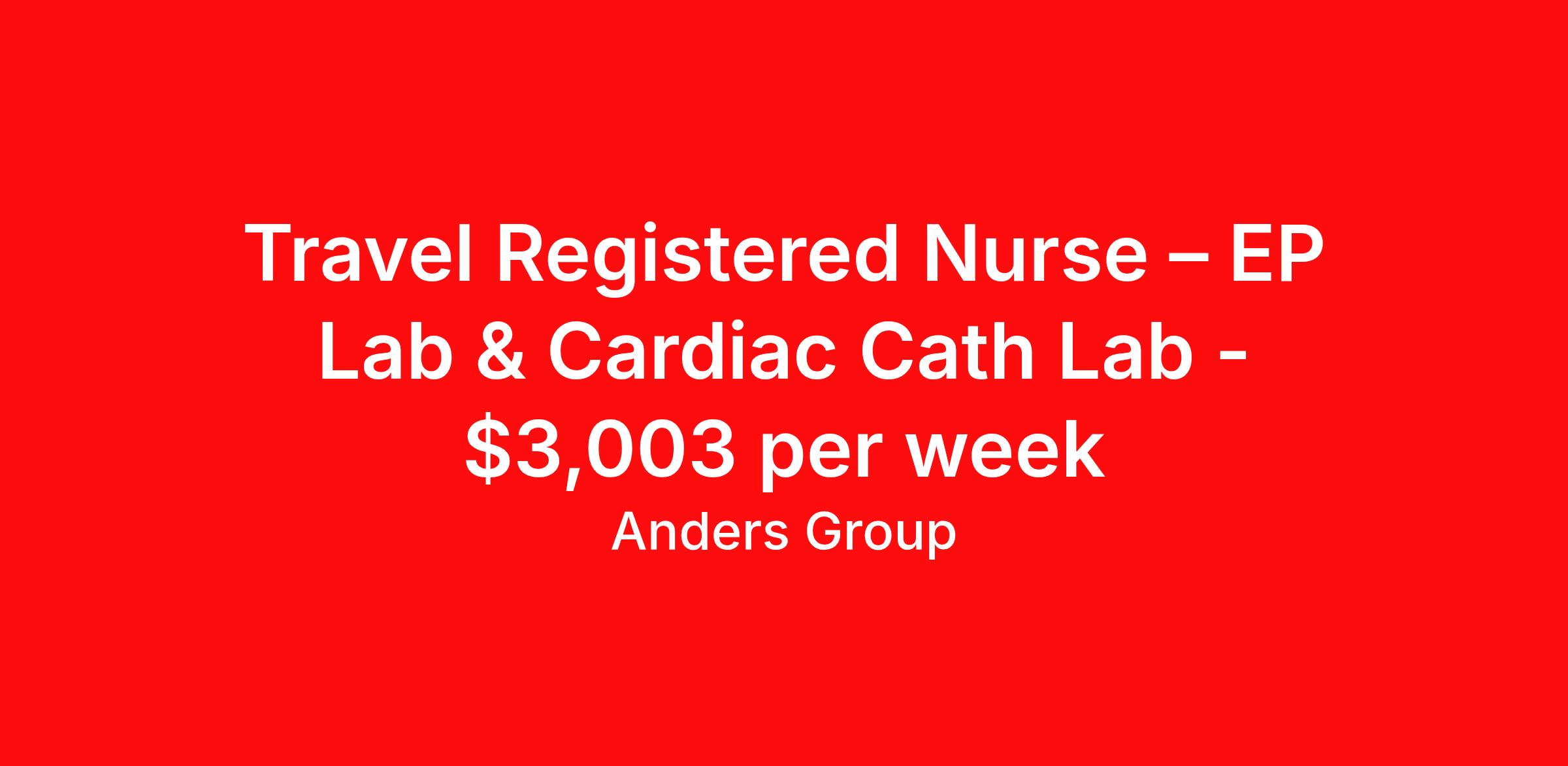 Travel Registered Nurse – EP Lab & Cardiac Cath Lab - $3,003 per week