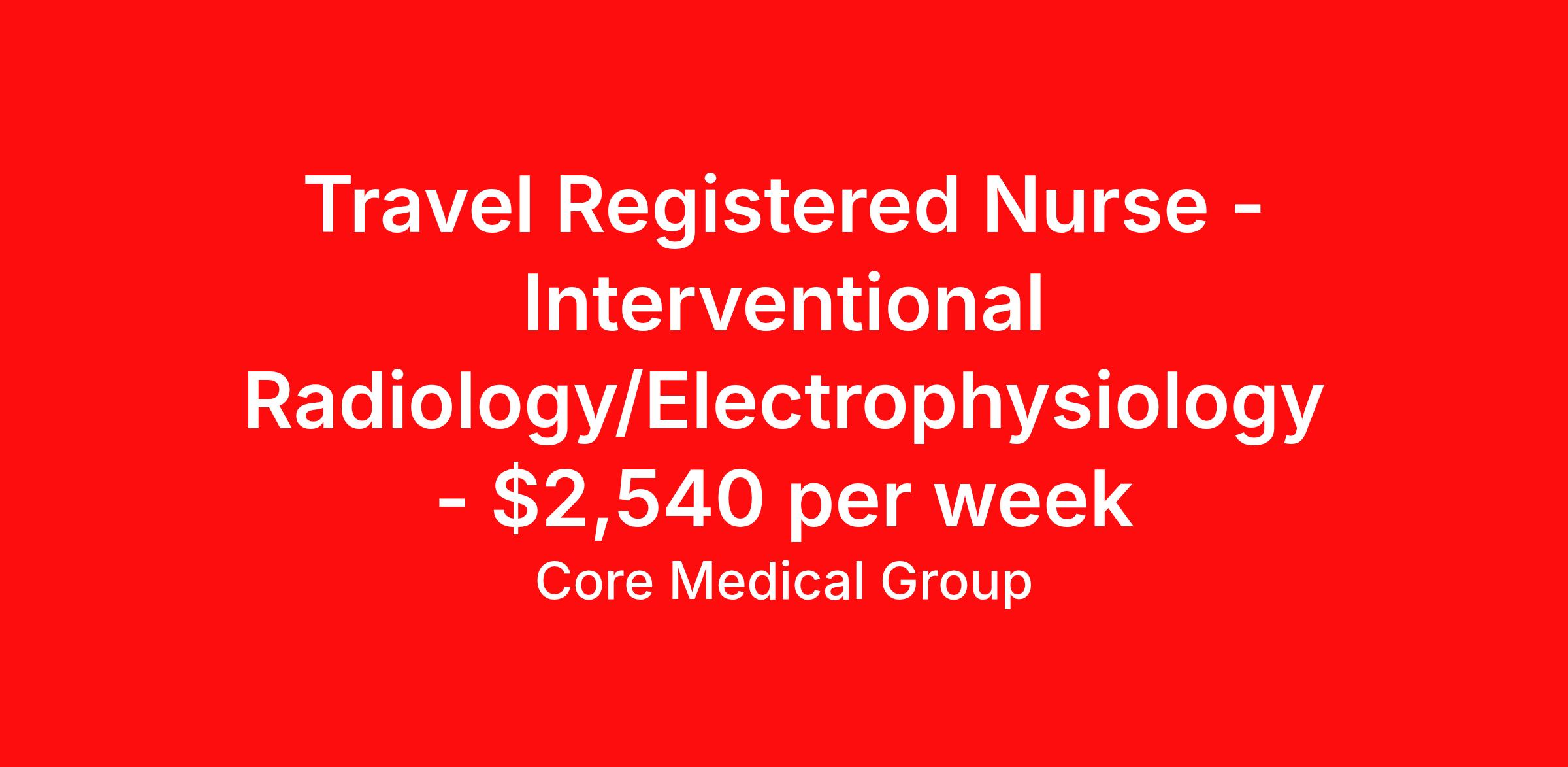 Travel Registered Nurse - Interventional Radiology/Electrophysiology - $2,540 per week