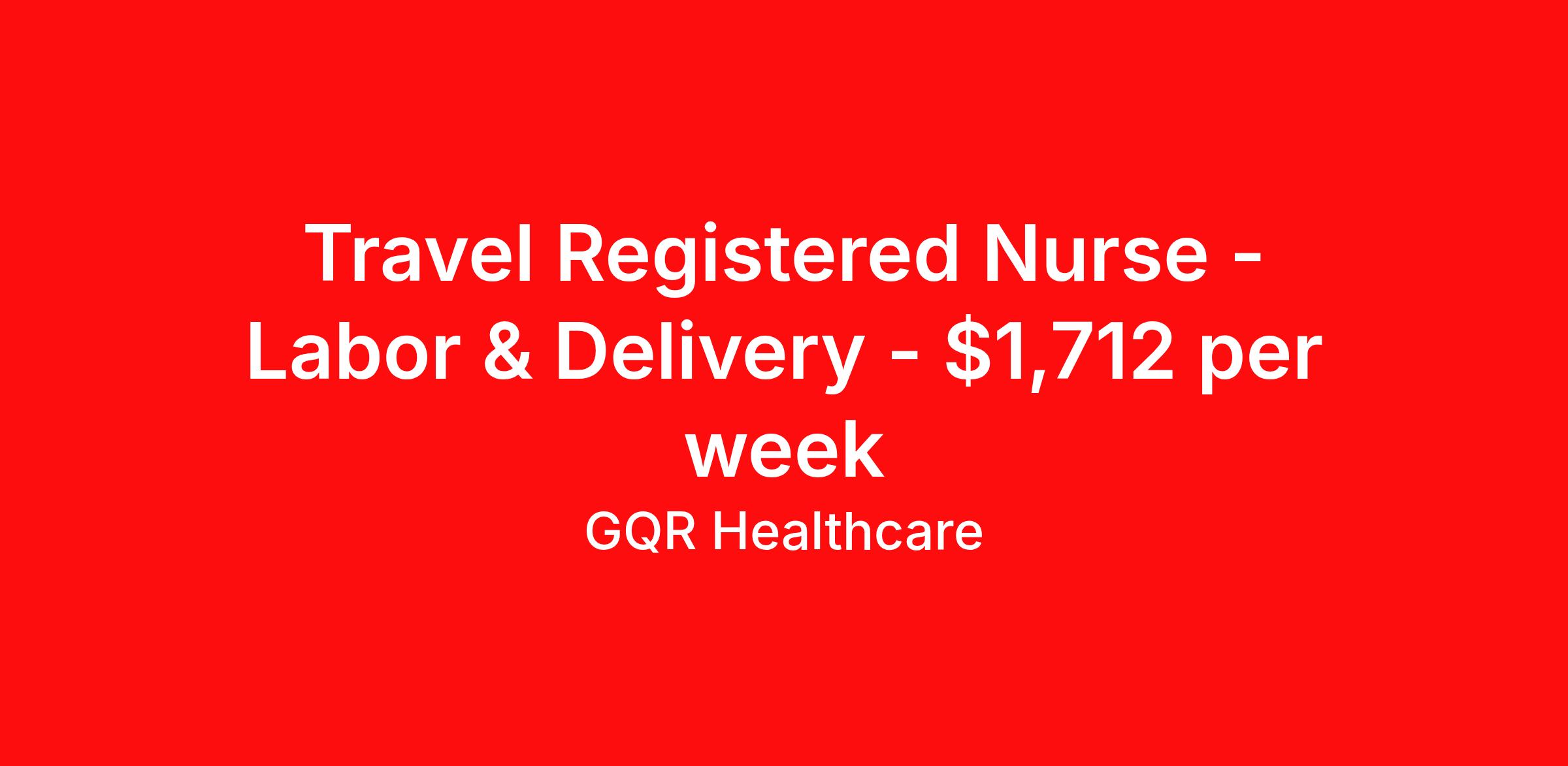 Travel Registered Nurse - Labor & Delivery - $1,712 per week