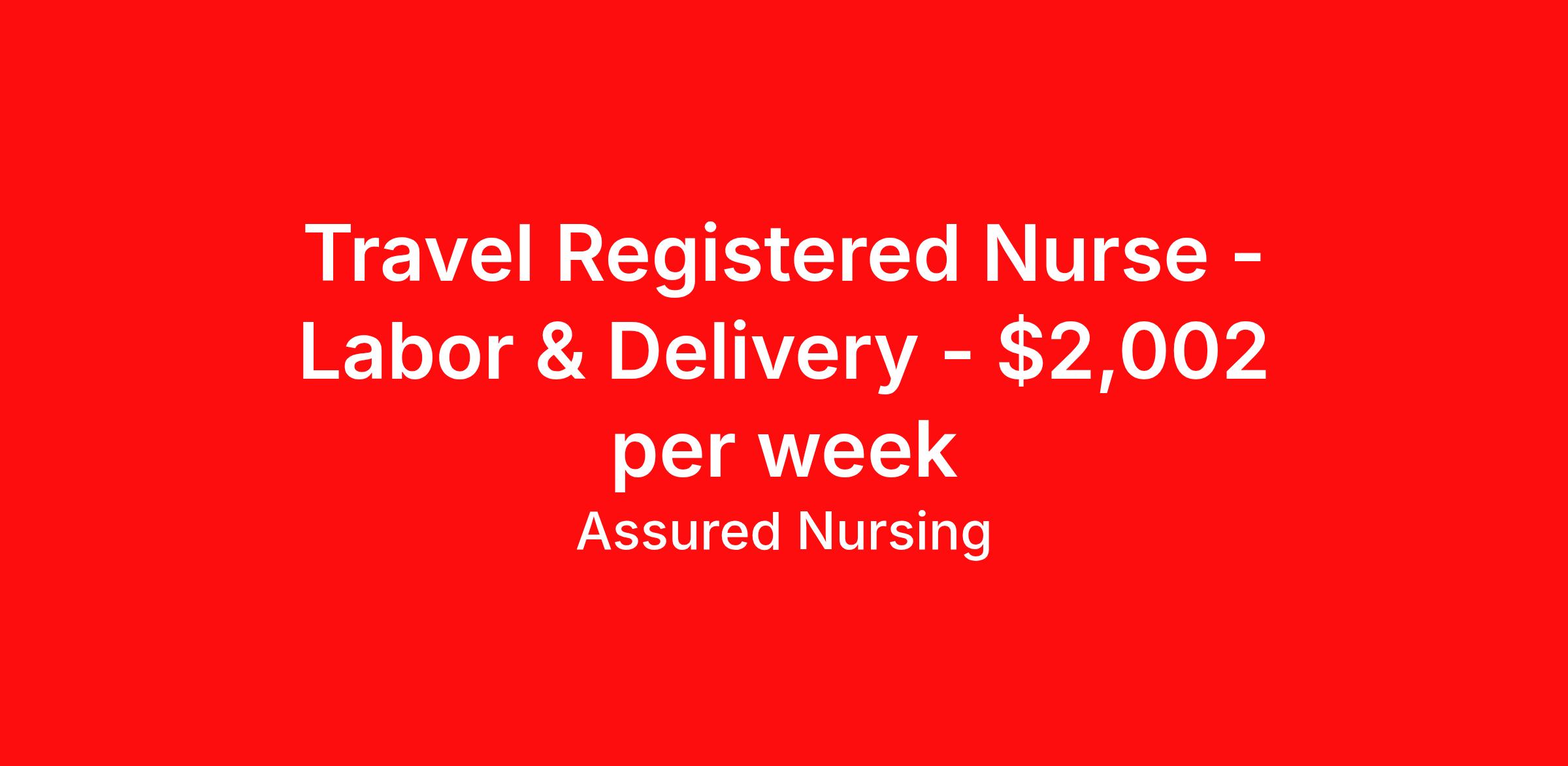 Travel Registered Nurse - Labor & Delivery - $2,002 per week