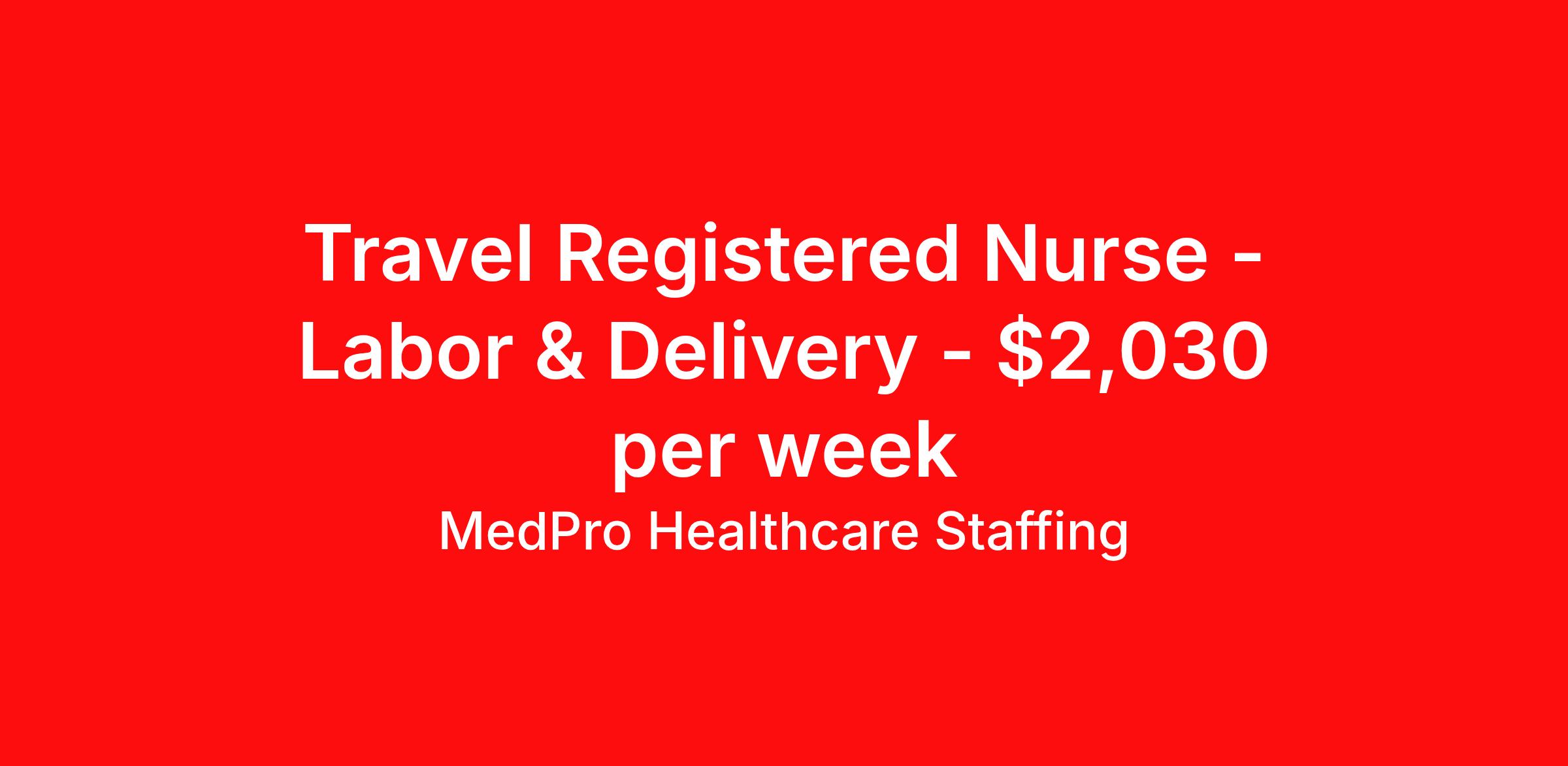 MedPro Healthcare Staffing is seeking a travel nurse RN Labor and Delivery for a travel nursing job in Bentonville, Arkansas. Job Description & Requirements Specialty: Labor and Delivery Discipline: RN Start Date: 04/06/2026 Duration: 13 weeks 36 hours per week Shift: 12 hours, days Employment Type: Travel MedPro Healthcare Staffing , a Joint Commission-certified staffing agency, is seeking a quality Labor & Delivery Registered Nurse for a travel assignment with one of our top healthcare clients. Requirements Active RN License Degree from accredited nursing program BLS, ACLS, NRP, PALS AWHONN Certifications Eighteen months of recent experience in an Acute Care Labor and Delivery (L&D) setting Other requirements to be determined by our client facility Benefits Weekly pay and direct deposit Full coverage of all credentialing fees Private housing or housing allowance Group Health insurance for you and your family Company-paid life and disability insurance Travel reimbursement 401(k) matching Unlimited Referral Bonuses up to $1,000 Duties Responsibilities Labor and Delivery Nurses (RN), also called perinatal nurses, provide care and support for women before, during and after delivery of the baby. They are responsible for making sure that the medical as well as the emotional needs of the patient are adequately met throughout the entire birthing process. Labor and Delivery (LD) nurses provide care to women and their newborns during the antepartum, intrapartum, postpartum and neonatal stages. Monitor vital signs of the mother and baby during birth. Monitor patients for potential high risk problems. Educate and support mothers and their families after giving birth. About Agency MedPro Healthcare Staffing is a Joint Commission certified provider of contract staffing services. Since 1983, we have placed nursing and allied travelers in top healthcare facilities nationwide. Join us today for your very own MedPro Experience®. If qualified and interested, please call for immediate consideration. MedPro Staffing is an Equal Opportunity Employer. All applicants will be considered for employment without attention to race, color, religion, national origin, age, sex, disability, marital status or veteran status. Key Words: Registered Nurse, RN, Labor & Delivery, Contract Nurse, Travel Nurse, Agency RN, Travel RN, Nursing, Contract, L&D, Labor and Delivery, LD *Weekly payment estimates are intended for informational purposes only and include a gross estimate of hourly wages and reimbursements for meal, incidental, and housing expenses. Your recruiter will confirm your eligibility and provide additional details. MedPro Job ID a0Fcx00000HTshZEAT. Pay package is based on 12 hour shifts and 36 hours per week (subject to confirmation) with tax-free stipend amount to be determined. Posted job title: Labor & Delivery Registered Nurse Nursing: Labor and Delivery. About MedPro Healthcare Staffing At MedPro Healthcare Staffing , we believe no one cares more for caregivers than we do. Our mission is simple: you focus on your patients, and we’ll take care of the rest. As a Joint Commission-certified leader in temporary and contract healthcare staffing since 1983, MedPro has proudly connected nursing and allied travelers with top healthcare facilities across the nation. With thousands of job opportunities available nationwide, we make it easy to find assignments that align with your goals and lifestyle. Our on-staff clinical support team—alongside a compassionate group of experienced recruiters—provides hands-on guidance every step of the way. From Day 1 medical benefits and a 401(k) plan to personalized career support, we’re committed to ensuring every professional we serve feels valued, cared for, and empowered to succeed. Guided by a CEO who is a Registered Nurse, MedPro is built on a foundation of clinical insight and genuine compassion for the caregiving community. Through The MedPro Experience® , we deliver travel assignments that are rewarding, memorable, and designed to help you DREAM big, EXPLORE often, and ACHIEVE greatness. Benefits Day 1 medical, dental, and vision benefits for you and your family Weekly pay and direct deposit Unlimited Referral Bonuses starting at $500 On Staff Clinical Support Team Access to nationwide travel assignments MPX Mobile app -24/7 real-time access to jobs, credentials, assignment details, and more Full coverage of all credentialing fees Private housing or housing allowance Tax Free Per Diems, Housing Stipends and Travel Reimbursements Company-paid life and disability insurance Travel reimbursement 401(k) matching Benefits Weekly pay Referral bonus Employee assistance programs
