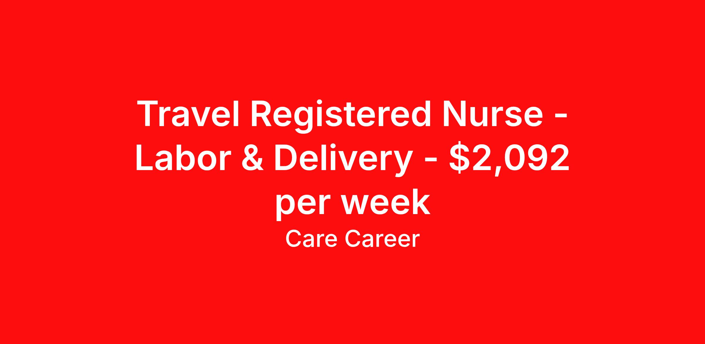 Travel Registered Nurse - Labor & Delivery - $2,092 per week