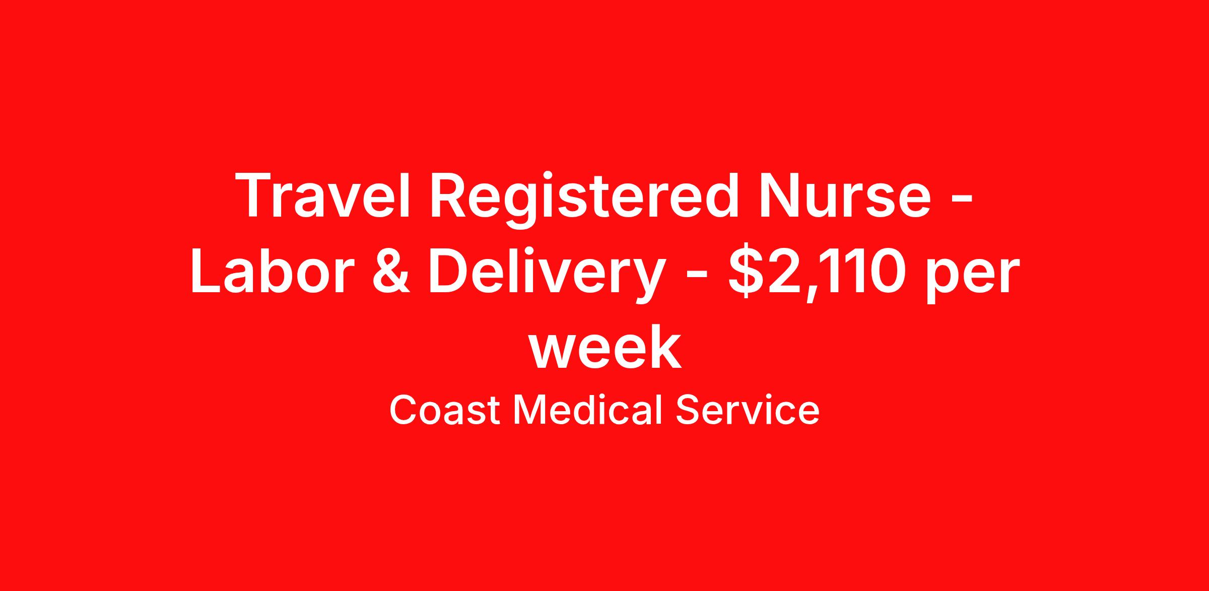 Coast Medical Service is seeking a travel nurse RN Labor and Delivery for a travel nursing job in Bentonville, Arkansas. Job Description & Requirements Specialty: Labor and Delivery Discipline: RN Start Date: 03/30/2026 Duration: 13 weeks 36 hours per week Shift: 12 hours, days Employment Type: Travel Coast Medical Service is a nationwide travel nursing & allied healthcare staffing agency dedicated to providing an elite traveler experience for the experienced or first-time traveler. Coast is featured on Blue Pipes' 2023 Best Travel Agencies and named a 2022 Top Rated Healthcare Staffing Firm & 2023 First Half Top Rated Healthcare Staffing Firm by Great Recruiters. Please note that pay rate may differ for locally based candidates. Please apply here or contact a recruiter directly to learn more about this position & the facility, and/or explore others that may be of interest to you. We look forward to speaking with you! Coast Medical Services Job ID 36151962. Pay package is based on 12 hour shifts and 36.0 hours per week (subject to confirmation) with tax-free stipend amount to be determined. Posted job title: RN:Labor and Delivery,07:00:00-19:30:00