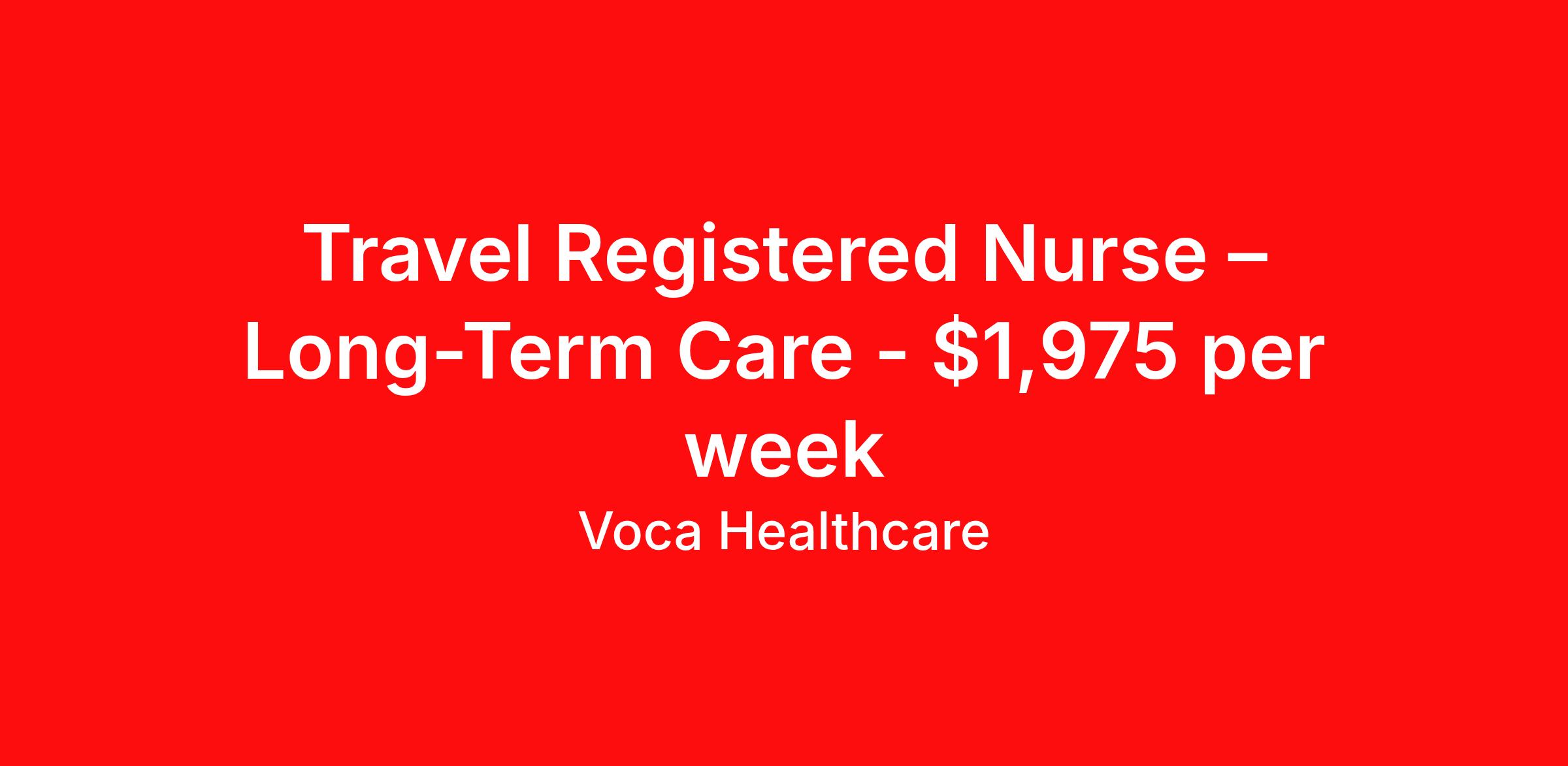 Voca Healthcare is seeking a travel nurse RN Long Term Care (LTC) Long Term Care for a travel nursing job in Williston, North Dakota. Job Description & Requirements Specialty: Long Term Care Discipline: RN Start Date: 04/07/2026 Duration: 14 weeks 36 hours per week Shift: 12 hours, days Employment Type: Travel Benefits available on 1st of the month after start: Holiday pay Weekly pay Retention bonus 401k retirement plan Medical benefits Dental benefits Vision benefits Referral bonus Are you an experienced Long Term Care RN looking for your next exciting travel assignment, or are you ready to start your travel healthcare career? At Voca, we offer an unmatched experience for healthcare professionals with a travel-first culture that prioritizes your needs and supports your career growth. We understand that every traveler is unique, which is why we provide personalized support from our experienced team of recruiters who are dedicated to matching you with the right assignments. Join Voca today, where you will enjoy a rewarding career and a full suite of benefits designed to ensure your success and well-being. As a Long Term Care RN with Voca, you’ll have the opportunity to work in dynamic healthcare settings, gaining valuable experience while receiving competitive compensation and support every step of the way. Qualifications: Minimum of 2 years of recent experience as a Long Term Care RN preferred, but we are open to exceptional candidates with a strong passion. Valid certification and/or licensure in the state of practice, if applicable. Demonstrated ability to maintain a high level of professionalism and composure, especially during stressful and fast-paced moments in the healthcare setting. Valid Driver’s License and the ability to travel between assignment locations. Ability to pass a background check and drug screen to meet healthcare industry standards. Why Choose Voca? Comprehensive Benefits Package: We offer Health, Dental, and Vision Insurance to ensure that you and your loved ones are well taken care of. Life and Disability Insurance for added peace of mind. 401(k) options to help you save for your future with employer matching. Certification and Licensure Reimbursement to support your professional development. Generous Referral Bonus Program – earn rewards for referring your qualified peers to join the Voca team. Weekly Direct Deposit ensures timely access to your earnings. At Voca, You Are Our Priority: Travel-First Culture: We understand that travel assignments offer unique challenges, so we ensure a flexible and supportive work environment that focuses on your success. Personalized Support: Work with a dedicated recruiter who will be your advocate throughout your journey, helping you navigate each assignment and providing personalized guidance to ensure your goals are met. Strong Relationships: Voca’s culture fosters long-term relationships with our travelers. We care about your career, your needs, and your future.- Whether you're a seasoned Long Term Care RN or ready to take the next step in your travel healthcare career, Voca is the perfect place for you to grow, learn, and thrive. Apply today to connect with one of our talented recruiters and begin your next adventure! Voca Healthcare Job ID 17988712. Pay package is based on 12 hour shifts and 36.0 hours per week (subject to confirmation) with tax-free stipend amount to be determined. Posted job title: RN:LTC,07:00:00-19:00:00 About Voca Healthcare As a Voca Traveler, you will gain new clinical skills, visit amazing places and meet awesome healthcare professionals. As a travel health professional, your experience and dedication to patient care is in high demand throughout the United States. Whether you are a veteran traveler looking for your next opportunity, or you are looking to travel for the first time, Voca is here to support you. Voca’s experienced and dedicated travel team works in concert with you every step of the way. Our long-standing partnerships with some of the most respected and recognized healthcare organizations in the country allow us to identify career opportunities to help you increase your knowledge and experience while working with some of the best physicians and healthcare professionals in the world. At Voca, we strongly believe a better career results in a happier you. We are here to help you find a position that is professionally and personally rewarding. Benefits Holiday Pay 401k retirement plan Medical benefits Dental benefits Vision benefits Guaranteed Hours