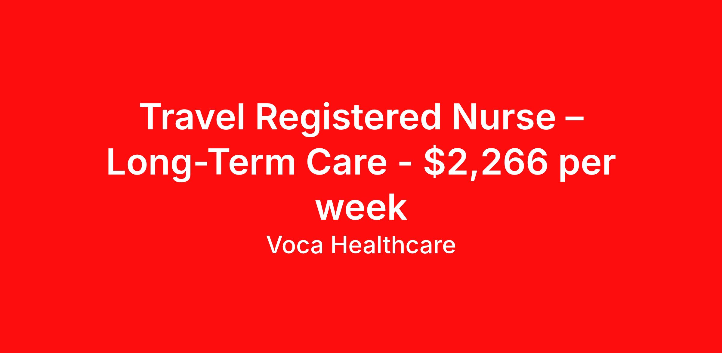 Voca Healthcare is seeking a travel nurse RN Long Term Care (LTC) Long Term Care for a travel nursing job in Las Vegas, New Mexico. Job Description & Requirements Specialty: Long Term Care Discipline: RN Start Date: ASAP Duration: 16 weeks 40 hours per week Shift: 8 hours, days Employment Type: Travel Benefits available on 1st of the month after start: Holiday pay Weekly pay Retention bonus 401k retirement plan Medical benefits Dental benefits Vision benefits Referral bonus Are you an experienced Long Term Care RN looking for your next exciting travel assignment, or are you ready to start your travel healthcare career? At Voca, we offer an unmatched experience for healthcare professionals with a travel-first culture that prioritizes your needs and supports your career growth. We understand that every traveler is unique, which is why we provide personalized support from our experienced team of recruiters who are dedicated to matching you with the right assignments. Join Voca today, where you will enjoy a rewarding career and a full suite of benefits designed to ensure your success and well-being. As a Long Term Care RN with Voca, you’ll have the opportunity to work in dynamic healthcare settings, gaining valuable experience while receiving competitive compensation and support every step of the way. Qualifications: Minimum of 2 years of recent experience as a Long Term Care RN preferred, but we are open to exceptional candidates with a strong passion. Valid certification and/or licensure in the state of practice, if applicable. Demonstrated ability to maintain a high level of professionalism and composure, especially during stressful and fast-paced moments in the healthcare setting. Valid Driver’s License and the ability to travel between assignment locations. Ability to pass a background check and drug screen to meet healthcare industry standards. Why Choose Voca? Comprehensive Benefits Package: We offer Health, Dental, and Vision Insurance to ensure that you and your loved ones are well taken care of. Life and Disability Insurance for added peace of mind. 401(k) options to help you save for your future with employer matching. Certification and Licensure Reimbursement to support your professional development. Generous Referral Bonus Program – earn rewards for referring your qualified peers to join the Voca team. Weekly Direct Deposit ensures timely access to your earnings. At Voca, You Are Our Priority: Travel-First Culture: We understand that travel assignments offer unique challenges, so we ensure a flexible and supportive work environment that focuses on your success. Personalized Support: Work with a dedicated recruiter who will be your advocate throughout your journey, helping you navigate each assignment and providing personalized guidance to ensure your goals are met. Strong Relationships: Voca’s culture fosters long-term relationships with our travelers. We care about your career, your needs, and your future.- Whether you're a seasoned Long Term Care RN or ready to take the next step in your travel healthcare career, Voca is the perfect place for you to grow, learn, and thrive. Apply today to connect with one of our talented recruiters and begin your next adventure! Voca Healthcare Job ID 17913629. Pay package is based on 8 hour shifts and 40.0 hours per week (subject to confirmation) with tax-free stipend amount to be determined. Posted job title: RN:LTC,08:00:00-16:00:00 About Voca Healthcare As a Voca Traveler, you will gain new clinical skills, visit amazing places and meet awesome healthcare professionals. As a travel health professional, your experience and dedication to patient care is in high demand throughout the United States. Whether you are a veteran traveler looking for your next opportunity, or you are looking to travel for the first time, Voca is here to support you. Voca’s experienced and dedicated travel team works in concert with you every step of the way. Our long-standing partnerships with some of the most respected and recognized healthcare organizations in the country allow us to identify career opportunities to help you increase your knowledge and experience while working with some of the best physicians and healthcare professionals in the world. At Voca, we strongly believe a better career results in a happier you. We are here to help you find a position that is professionally and personally rewarding. Benefits Holiday Pay 401k retirement plan Medical benefits Dental benefits Vision benefits Guaranteed Hours