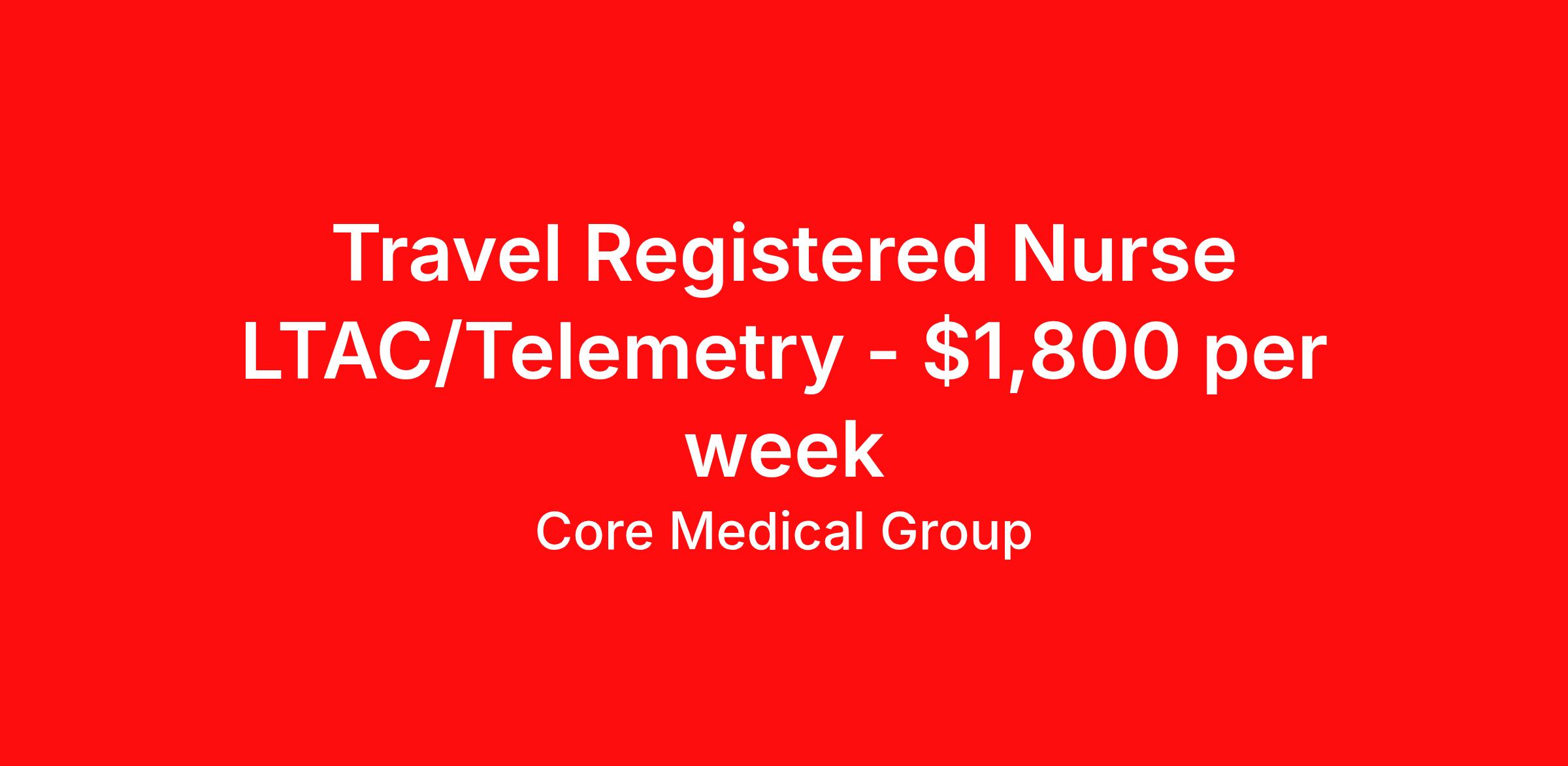 Core Medical Group is seeking a travel nurse RN Long Term Acute Care for a travel nursing job in Lima, Ohio. Job Description & Requirements Specialty: Long Term Acute Care Discipline: RN Start Date: 04/20/2026 Duration: 13 weeks 36 hours per week Shift: 12 hours Employment Type: Travel Client in OH seeking Registered Nurse: LTAC / Long-Term Acute Care for the following shift(s): Nights We are looking for a healthcare professional who is ready to provide exceptional patient care in this contract/travel role. Contract/travel assignments are typically 13 weeks, with potential to extend. Help us continue our mission to connect people, improve lives, and give back to the community by joining the CoreMedical Group team. When you work with CoreMedical Group, we put you first and treat you like family, supporting you every step of the way. CoreMedical Group is one of the largest healthcare staffing agencies in the country, with travel and contract positions located across the United States. Our recruiters will help you find the perfect job, whether it's across the country or across the street. In addition to dedicated, personalized support from your recruiter, when you work with CoreMedical Group you'll receive: Access to an extensive benefits package, including day 1 health, dental, and vision insurance, employer paid life insurance, a health reimbursement account, and more! Weekly paychecks with competitive pay packages Matching 401(k) benefits to help you save for retirement Licensure assistance and reimbursement to set you up for success on your contract Travel reimbursement and dedicated housing support while on assignment Referral cash bonuses when you connect us with other clinicians CoreMedical Group also offers you a free, all-inclusive vacation each year as our way of saying "thank you" for your hard work. Join other healthcare professionals on the annual Club CoreMed retreat and you'll see why our contract and travel professionals come back to us year after year! Your career is too valuable to tackle on your own. Let CoreMedical Group help you with your healthcare journey! *Estimate of weekly payments is intended for informational purposes and includes hourly wages, as well as reimbursements for meal & incidental expenses, and housing expenses incurred on behalf of the Company. Any benefits (medical/dental/vision) are in addition to the weekly pay. Please speak with your Recruiter for additional details. Estimated payments are subject to change until formal offer of assignment is made and accepted. Core Medical Group Job ID 1367817. Pay package is based on 12 hour shifts and 36 hours per week (subject to confirmation) with tax-free stipend amount to be determined. Posted job title: RN About Core Medical Group CoreMedical Group is one of the largest healthcare staffing agencies in the country. We have jobs nationwide in travel nursing, travel allied health, interim, locum tenens, and permanent placements! Join the staffing agency with Club CoreMed, the best perk in the industry - an all inclusive paid trip to a tropical resort! Benefits Weekly pay Holiday Pay Guaranteed Hours Continuing Education 401k retirement plan Pet insurance Company provided housing options Sick pay Wellness and fitness programs Mileage reimbursement Referral bonus Employee assistance programs Medical benefits Dental benefits Vision benefits Benefits start day 1 License and certification reimbursement Life insurance Discount program