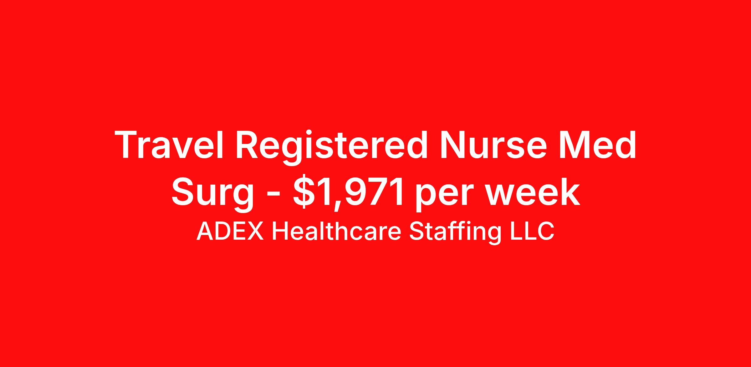 ADEX Healthcare Staffing LLC is seeking a travel nurse RN Med Surg for a travel nursing job in Saint Louis, Missouri. Job Description & Requirements Specialty: Med Surg Discipline: RN Start Date: ASAP Duration: 13 weeks 36 hours per week Shift: 12 hours, nights Employment Type: Travel RN Position Job Notes: Travel or Local Registered Nurse needed for ASAP start. A minimum of 2 years of recent hospital bedside experience is required. Candidates must be able to start within 5 weeks. Opportunity for extension upon successful completion of the initial assignment. $750 referral bonus available. Opportunity: RN - Med Surg Job Details: • Work night shifts from 7:00 PM to 7:30 AM • 36 or 48 guaranteed hours per week (must be specified on submission) • 13-week assignment length • Every other weekend required • No call requirements • Patient ratio of 1:5 or 1:6 on 60-bed medical unit • Float to similar or lower acuity units as needed • Must have 1 year medical surgical experience (inpatient only) • Current RN license required (Missouri licensed or eligible for Missouri licensure) • BLS from AHA required • ACLS from AHA preferred • Work with equipment including bladder scanners, vein finders, IV pumps, and wound vacs • Use EPIC electronic medical record system • Black scrubs required • Provide direct patient care for medical patients including post-trauma, surgical interventions, and medical comorbidities • Physical demands include standing and walking most of shift, lifting up to 50 lbs., and potential exposure to blood and body fluids • Night shift orientation occurs on day shift - must be available entire orientation week • Perform nursing process activities including assessment, planning, implementation, and evaluation Facility: This healthcare facility has been serving the South St. Louis County area for over 140 years, providing compassionate medical and specialty care. The hospital earned a B grade in The Leapfrog Group's Fall 2025 Hospital Safety Grade and offers all-private rooms with nationally recognized programs. The facility operates as the only Level 2 Trauma Center in the South County area and holds Joint Commission designations including Comprehensive Stroke Center and Gold Seal of Approval for Advanced Certification in Heart Failure. Additional services include a Level 1 STEMI Center and recognition from the American Heart Association for heart failure quality achievement. Location: Saint Louis, MO Saint Louis offers an exciting blend of history, culture, and entertainment with iconic attractions like the Gateway Arch and vibrant entertainment districts. The city is known for its rich brewing heritage with nearly 65 craft breweries, acclaimed food scene recognized by Food & Wine magazine, and diverse attractions including Union Station, City Museum, and professional sports teams like the Cardinals and Blues. Adex Job ID 993369. Pay package is based on 12 hour shifts and 36 hours per week (subject to confirmation) with tax-free stipend amount to be determined. About ADEX Healthcare Staffing LLC ADEX has been placing healthcare professionals across the US since 2004. Originally founded in Atlanta, GA, the company's headquarters are now located in Tampa, FL. JCAHO certified since 2009. Benefits Referral bonus