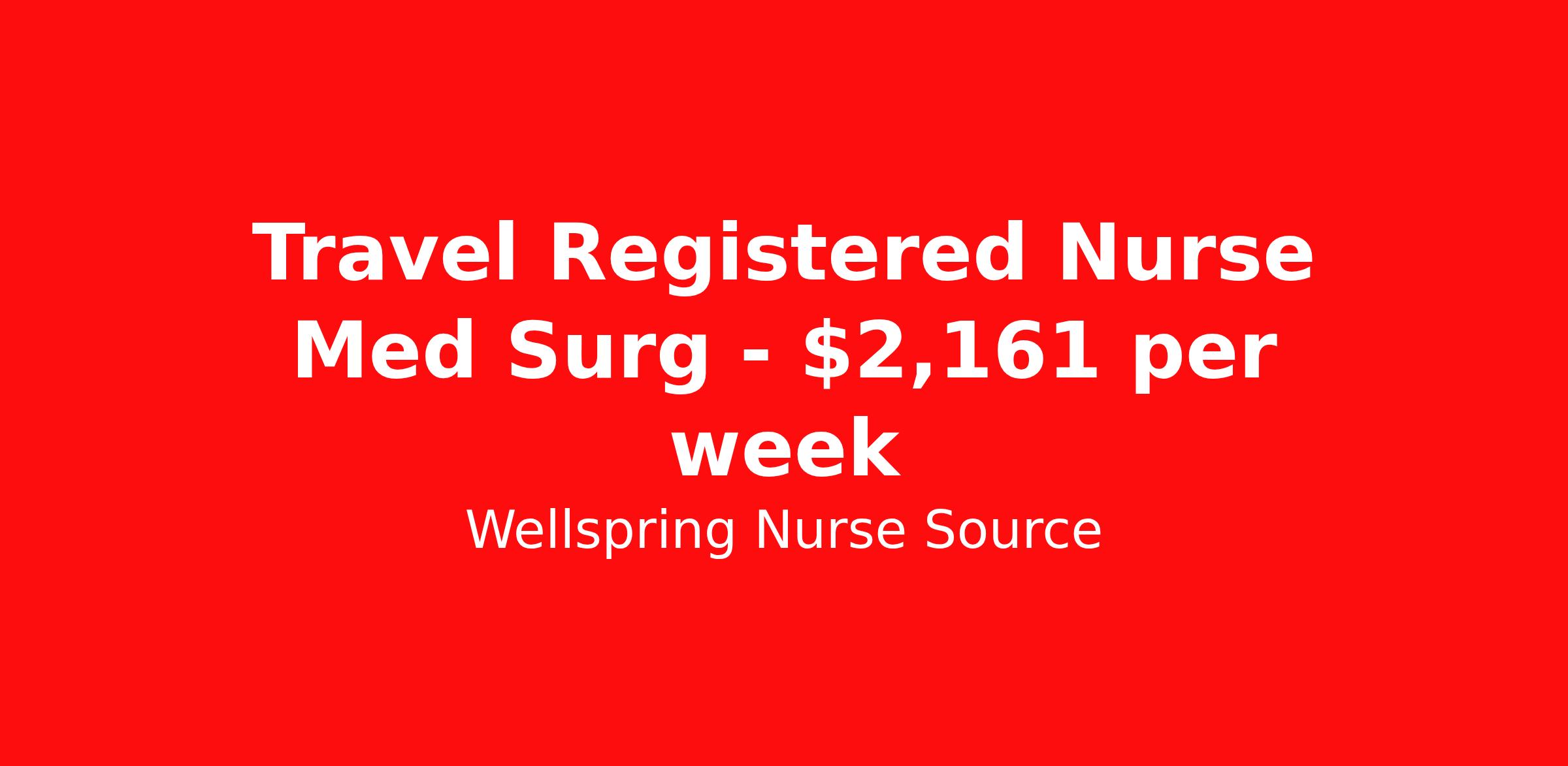 Wellspring Nurse Source is seeking a travel nurse RN Med Surg for a travel nursing job in Santa Fe, New Mexico. Job Description & Requirements Specialty: Med Surg Discipline: RN Start Date: ASAP Duration: 13 weeks 36 hours per week Shift: 12 hours, nights Employment Type: Travel Wellspring Nurse Source Job ID 36546493. Pay package is based on 12 hour shifts and 36.0 hours per week (subject to confirmation) with tax-free stipend amount to be determined. Posted job title: RN MS About Wellspring Nurse Source Wellspring One (formerly Wellspring Nurse Source) is a nurse-owned and operated healthcare staffing company built around one simple belief: clinicians deserve exceptional support. Our team is honored to represent what we believe is the greatest workforce on earth , and we work every day to support our clinicians with the same level of excellence they bring to their patients. Wellspring One was named one of SIA’s Best Staffing Firms to Work For in 2026 , a recognition that reflects our commitment to building a culture where clinicians feel supported, valued, and set up for success. From onboarding and compliance to payroll, career guidance, and on-assignment support, our dedicated Clinician Success Team is with you every step of your travel journey. We’re not focused on becoming the biggest staffing company. Our goal is to be the best partner you’ll ever work with. If you’re looking for a team that will advocate for you, support you, and help you find the right opportunities at the best rates, we’d love to be part of your journey.