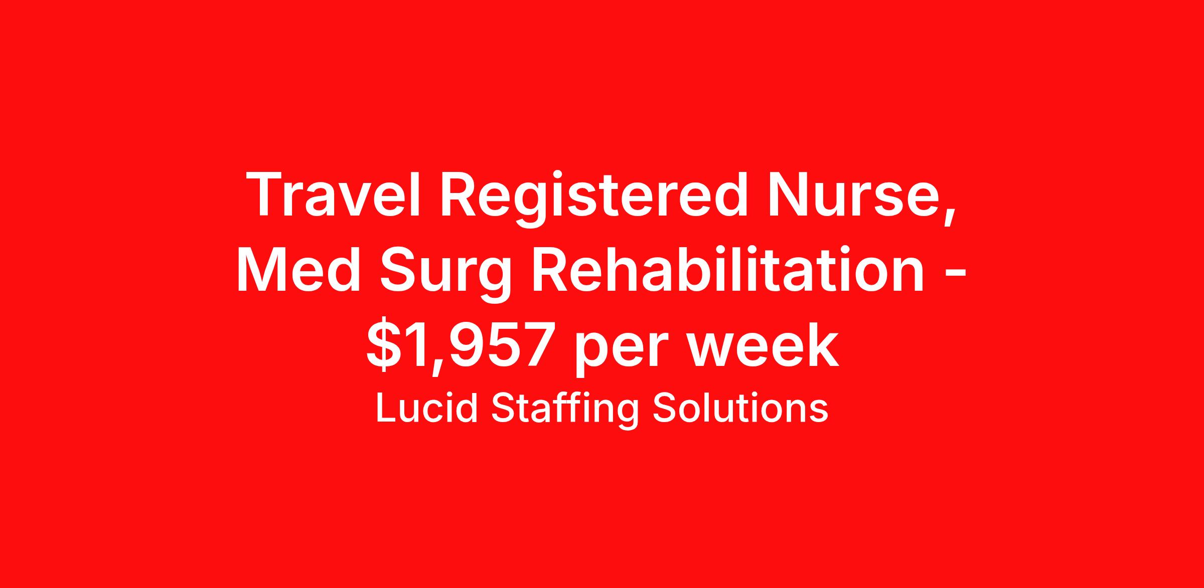 Lucid Staffing Solutions is seeking a travel nurse RN Med Surg for a travel nursing job in Pasco, Washington. Job Description & Requirements Specialty: Med Surg Discipline: RN Duration: 13 weeks 36 hours per week Shift: 12 hours, days Employment Type: Travel Job Description Position: Travel Registered Nurse (RN) with experience in MS-Tele Location: Pasco, Washington Shift: 12hr Day Weekly Gross: $1957.13 Lucid Staffing Solutions was created by former healthcare workers who lived the short staffing, the chaotic workflows, and the nonstop pressure that comes with patient care. We built an agency powered by real clinical experience, kept simple and supportive, so you never have to guess whether the people guiding you actually know what they’re talking about. Minimum Requirements: Active license as a Registered Nurse (RN) Licensed in Washington (If applicable) or compact eligible Two years of recent MS-Tele experience Active BLS Why Lucid Works for Travelers Paid Weekly: Stipends pushed to GSA limits whenever possible $500 Travel Reimbursement: Paid at the start of each assignment Clinician-Led Team: Recruiters and Account Managers with real clinical experience In-House Compliance: fast updates, real communication, and none of the delays that come with outsourced vendors. Health Coverage Options: Multiple medical plans plus dental, vision, and workers compensation 401(k) Match: 4 percent match after 6 months License & Certification Reimbursement: We help cover the cost of staying compliant Liability Insurance: Included automatically Referral Bonuses: $500 per referral, $750 after five referrals Ready to start your journey? Apply today to connect with a Clinician-Recruiter! Lucid Staffing Solutions Job ID 36377. Pay package is based on 12 hour shifts and 36 hours per week (subject to confirmation) with tax-free stipend amount to be determined. Posted job title: MS About Lucid Staffing Solutions Clinician Owned & Operated At Lucid Staffing Solutions, we do things differently—because we’ve been in your shoes. Founded by actual healthcare professionals, Lucid was built to fix the issues we experienced as travelers. We know what makes a great assignment: competitive pay, seamless onboarding, honest recruiters, and most importantly—working with a team that truly sees and supports you. Our entire team is made up of former clinicians who understand the demands of the job and what travelers truly need to succeed. We offer some of the highest paying allied health and nursing contracts across the country, along with some amazing benefits & perks. Whether you're chasing freedom, flexible schedules, bigger paychecks, or your next adventure, Lucid helps you get there—with real support, real respect , and real healthcare experts. Benefits Dental benefits Medical benefits Vision benefits
