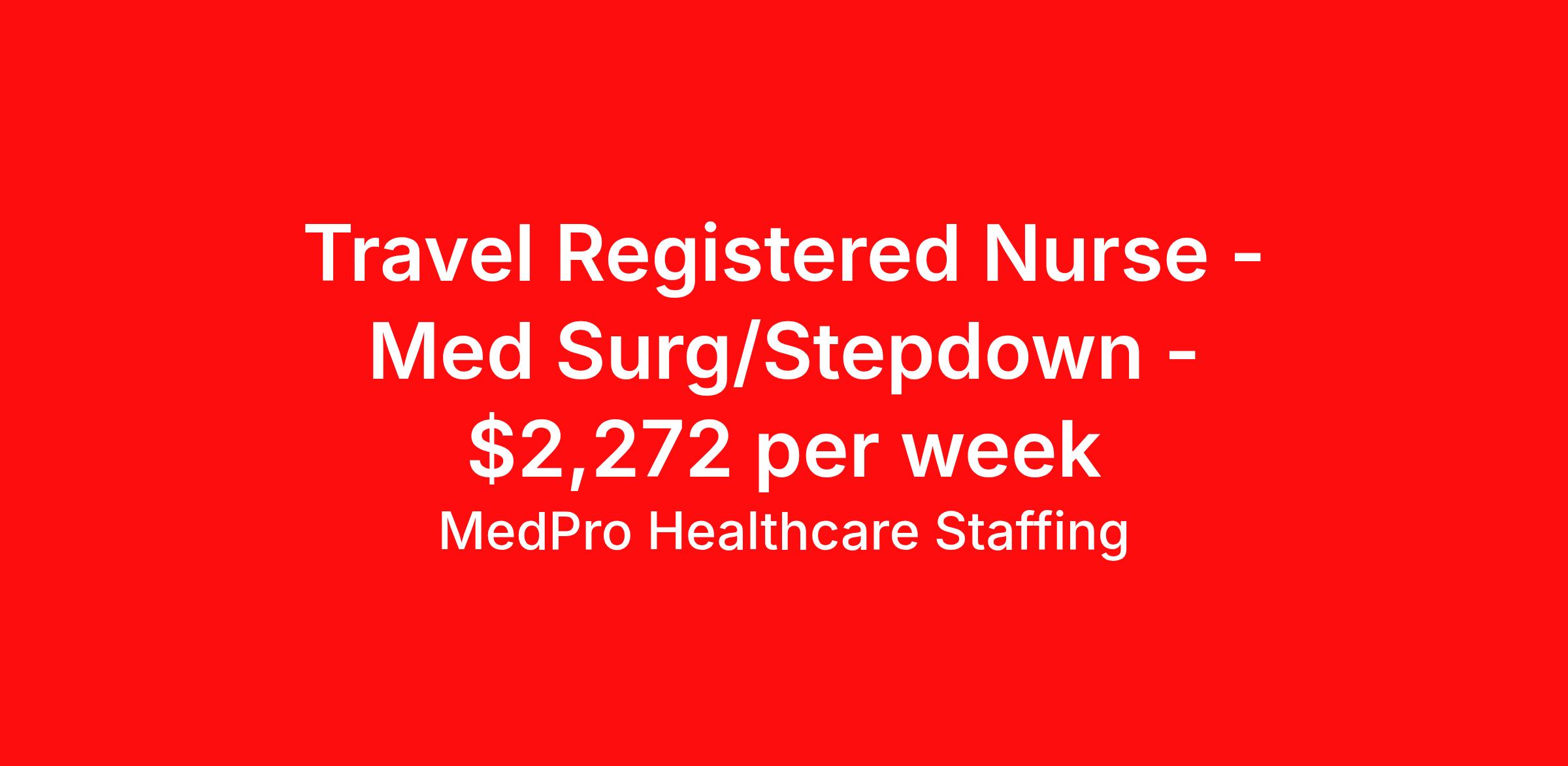 MedPro Healthcare Staffing is seeking a travel nurse RN PCU - Progressive Care Unit Med Surg for a travel nursing job in Oklahoma City, Oklahoma. Job Description & Requirements Specialty: PCU - Progressive Care Unit Discipline: RN Start Date: 04/06/2026 Duration: 13 weeks 36 hours per week Shift: 12 hours, days Employment Type: Travel MedPro Healthcare Staffing , a Joint Commission-certified staffing agency, is seeking a quality Step Down Registered Nurse for a travel assignment with one of our top healthcare clients. Requirements Active RN License. Degree from accredited nursing program. BLS Certifications. Eighteen months of recent experience in an Acute Care PACU setting. Other requirements to be determined by our client facility Benefits Weekly pay and direct deposit Full coverage of all credentialing fees Private housing or housing allowance Group Health insurance for you and your family Company-paid life and disability insurance Travel reimbursement 401(k) matching Unlimited Referral Bonuses up to $1,000 Duties Responsibilities Assesses patient needs, signs and symptoms indicating physiologic and psychosocial changes in the patient's condition Utilizes the nursing process to assess, plan, implement and evaluate patient care. Collects, analyzes, and interprets data and information from health care members and documents actual and/or potential nursing diagnoses. Documents the patient's plan of care using identified nursing diagnoses, expected patient outcomes, and selected nursing interventions. Initiates and evaluates patient and/or family education. Revises and documents the plan of care according to evaluation, changes in medical plan of care, and effective/ineffective nursing interventions. About Agency MedPro Healthcare Staffing is a Joint Commission certified provider of contract staffing services. Since 1983, we have placed nursing and allied travelers in top healthcare facilities nationwide. Join us today for your very own MedPro Experience®. If qualified and interested, please call for immediate consideration. MedPro Staffing is an Equal Opportunity Employer. All applicants will be considered for employment without attention to race, color, religion, national origin, age, sex, disability, marital status or veteran status. Key Words: Registered Nurse, RN, Step-Down, Contract Nurse, Travel Nurse, Agency RN, Travel RN, Per Diem, Nursing, Contract, Travel Nursing *Weekly payment estimates are intended for informational purposes only and include a gross estimate of hourly wages and reimbursements for meal, incidental, and housing expenses. Your recruiter will confirm your eligibility and provide additional details. MedPro Job ID a0Fcx00000GbPKnEAN. Pay package is based on 12 hour shifts and 36 hours per week (subject to confirmation) with tax-free stipend amount to be determined. Posted job title: Step Down Registered Nurse Nursing: Step-Down / Transitional Care. About MedPro Healthcare Staffing At MedPro Healthcare Staffing , we believe no one cares more for caregivers than we do. Our mission is simple: you focus on your patients, and we’ll take care of the rest. As a Joint Commission-certified leader in temporary and contract healthcare staffing since 1983, MedPro has proudly connected nursing and allied travelers with top healthcare facilities across the nation. With thousands of job opportunities available nationwide, we make it easy to find assignments that align with your goals and lifestyle. Our on-staff clinical support team—alongside a compassionate group of experienced recruiters—provides hands-on guidance every step of the way. From Day 1 medical benefits and a 401(k) plan to personalized career support, we’re committed to ensuring every professional we serve feels valued, cared for, and empowered to succeed. Guided by a CEO who is a Registered Nurse, MedPro is built on a foundation of clinical insight and genuine compassion for the caregiving community. Through The MedPro Experience® , we deliver travel assignments that are rewarding, memorable, and designed to help you DREAM big, EXPLORE often, and ACHIEVE greatness. Benefits Day 1 medical, dental, and vision benefits for you and your family Weekly pay and direct deposit Unlimited Referral Bonuses starting at $500 On Staff Clinical Support Team Access to nationwide travel assignments MPX Mobile app -24/7 real-time access to jobs, credentials, assignment details, and more Full coverage of all credentialing fees Private housing or housing allowance Tax Free Per Diems, Housing Stipends and Travel Reimbursements Company-paid life and disability insurance Travel reimbursement 401(k) matching Benefits Weekly pay Referral bonus Employee assistance programs