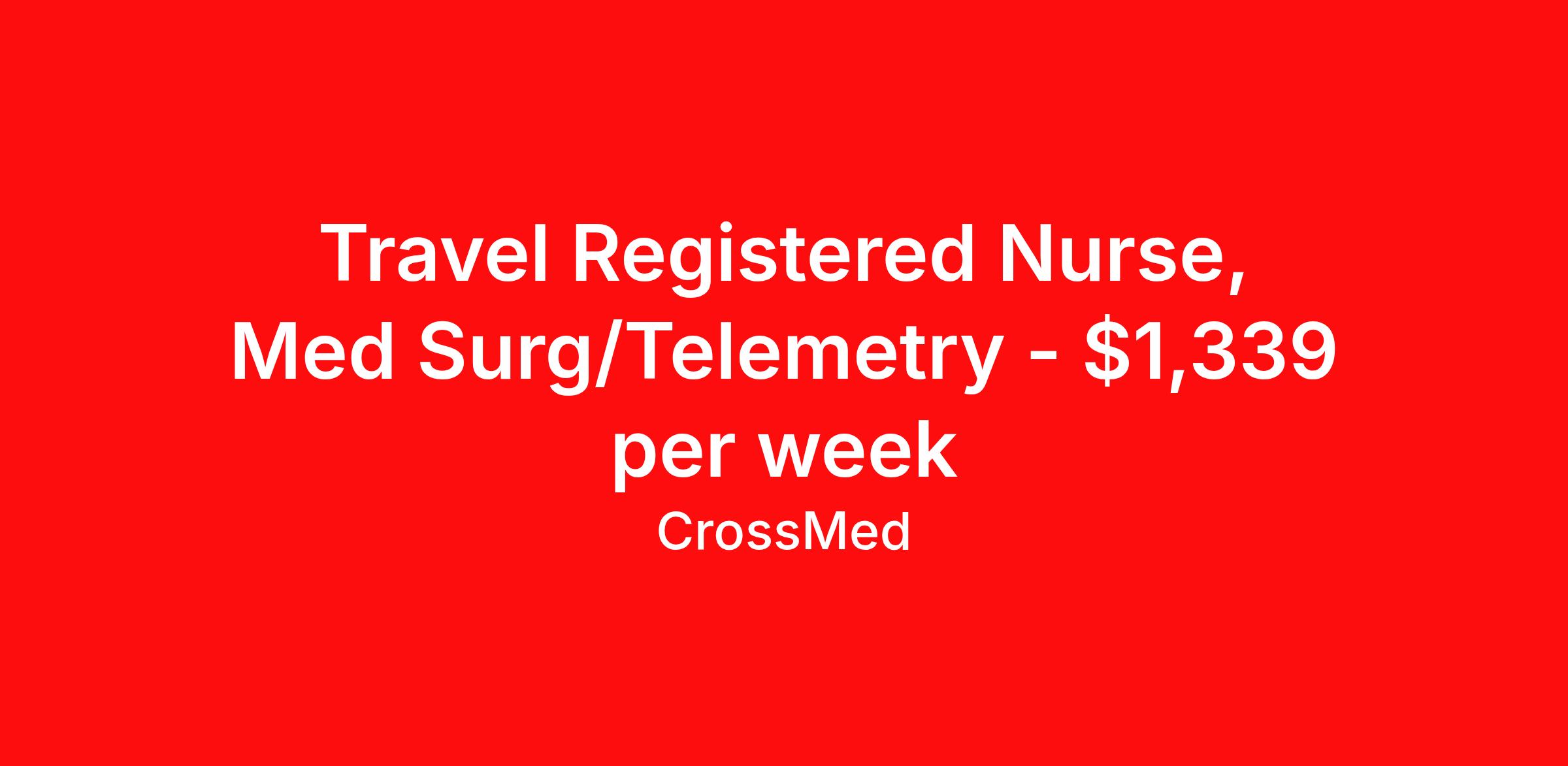 Travel Registered Nurse, Med Surg/Telemetry - $1,339 per week