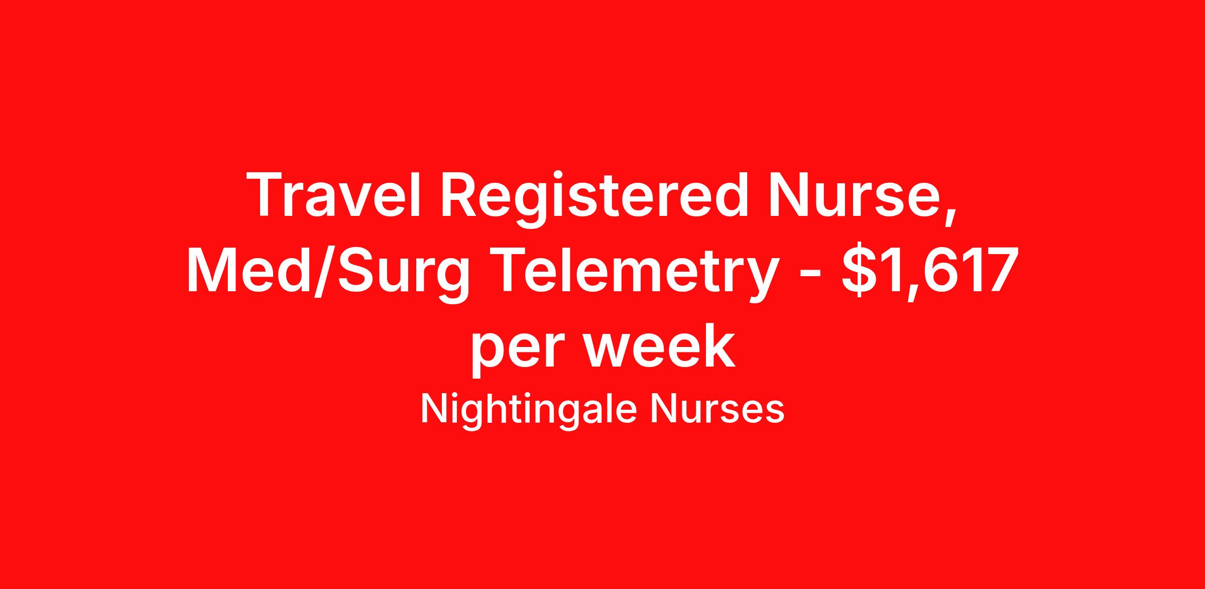 Nightingale Nurses is seeking a travel nurse RN Med Surg / Telemetry for a travel nursing job in Oklahoma City, Oklahoma. Job Description & Requirements Specialty: Med Surg / Telemetry Discipline: RN Start Date: 03/31/2026 Duration: 12 weeks 36 hours per week Shift: 12 hours, nights Employment Type: Travel About Nightingale Nurses the first name in travel nursing You may not realize it, but as an RN with real world hospital experience, you are legendary. To the lives you’ve helped save, the patients you’ve cared for, and to the hospitals where you’ve done it. And you’re just getting started. Legendary is where Nightingale begins. We’re the first name in travel nursing, representing only the very best RNs. That’s why hospitals prefer us, allowing us to offer exceptional travel nursing assignments all over the US, as well as the highest pay rates and most extensive benefits in the industry. Nightingale facilitates every aspect of your travel nursing assignment, so you can focus on doing what you do best. We want you to grow, explore, and enjoy unrivaled liberty, the freedom to nurse.