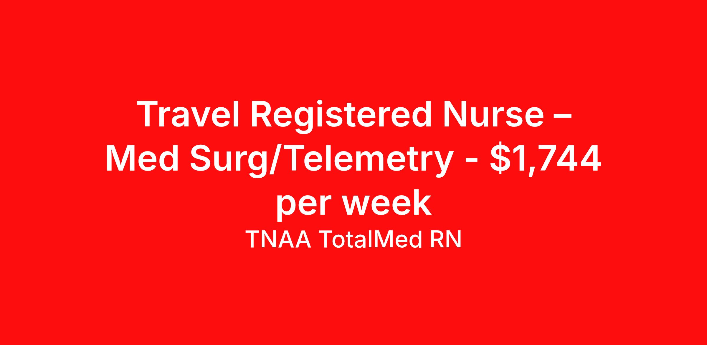 TNAA TotalMed RN is seeking a travel nurse RN Telemetry for a travel nursing job in Leonardtown, Maryland. Job Description & Requirements Specialty: Telemetry Discipline: RN Duration: 13 weeks 36 hours per week Shift: 12 hours, nights Employment Type: Travel We're looking for Telemetry RNs for an immediate travel nurse opening in Leonardtown, MD. The right RN should have 1-2 years' recent acute care experience. Read below for more requirements. As a TELE Travel Nurse, you will provide care by connecting patients to machines that measure heart rate, blood pressure, breathing rate, as well as blood-oxygen levels and electrocardiogram information. These machines then send data to computer screens for RNs to monitor. Telemetry RNs read and interpret the data to better determine patient care. As a TELE Travel Nurse, you should be prepared to perform the following tasks: Provide basic bedside care. Monitor and adjust specialized equipment used on patients, and interpret and record electronic displays. Identify irregular telemetry readings and notify appropriate medical team members. Initiate corrective action whenever information from monitoring equipment shows adverse symptomatology. TELE Travel Nurses should be able to stand and walk for long periods of time, as well as bend, lean and stoop without difficulty. RNs should be able to easily lift 20 pounds. Moving or lifting of patients may require lifting of up to 50 pounds at times. RNs must have specific vision abilities including close vision, distance vision, color vision, peripheral vision, depth perception and ability to adjust focus. Requirements*: BLS, 2 Years * Additional certifications may be required before beginning an assignment. TotalMed Travel Job ID 1379710. Pay package is based on 12 hour shifts and 36 hours per week (subject to confirmation) with tax-free stipend amount to be determined. Posted job title: Telemetry - TELE RN - Travel Nurse About TNAA TotalMed RN TotalMed is a Top Ten, travel nursing and healthcare staffing agency with the mission of igniting purpose in healthcare. The organization staffs nurses, therapists, pharmacists, and other clinicians of all specialties in all 50 states. They offer local and travel jobs and match caregivers with the right organization to assist both facilities and patients. As an organization, they focus on putting highly-skilled staff into facilities to ensure adequate staffing for a better patient experience. TotalMed specializes in recruiting and placing healthcare professionals in travel, PRN, and permanent positions across the country in Nursing and Allied Health. Throughout 2020, the organization filled roles at even the most short-staffed facilities during the most challenging time in healthcare. By matching the right travel healthcare professional with the right organization, TotalMed continues to offer a lifeline to facilities and their patients. Benefits Weekly pay Guaranteed Hours Continuing Education 401k retirement plan Sick pay Wellness and fitness programs Referral bonus Employee assistance programs Medical benefits Dental benefits Vision benefits Benefits start day 1