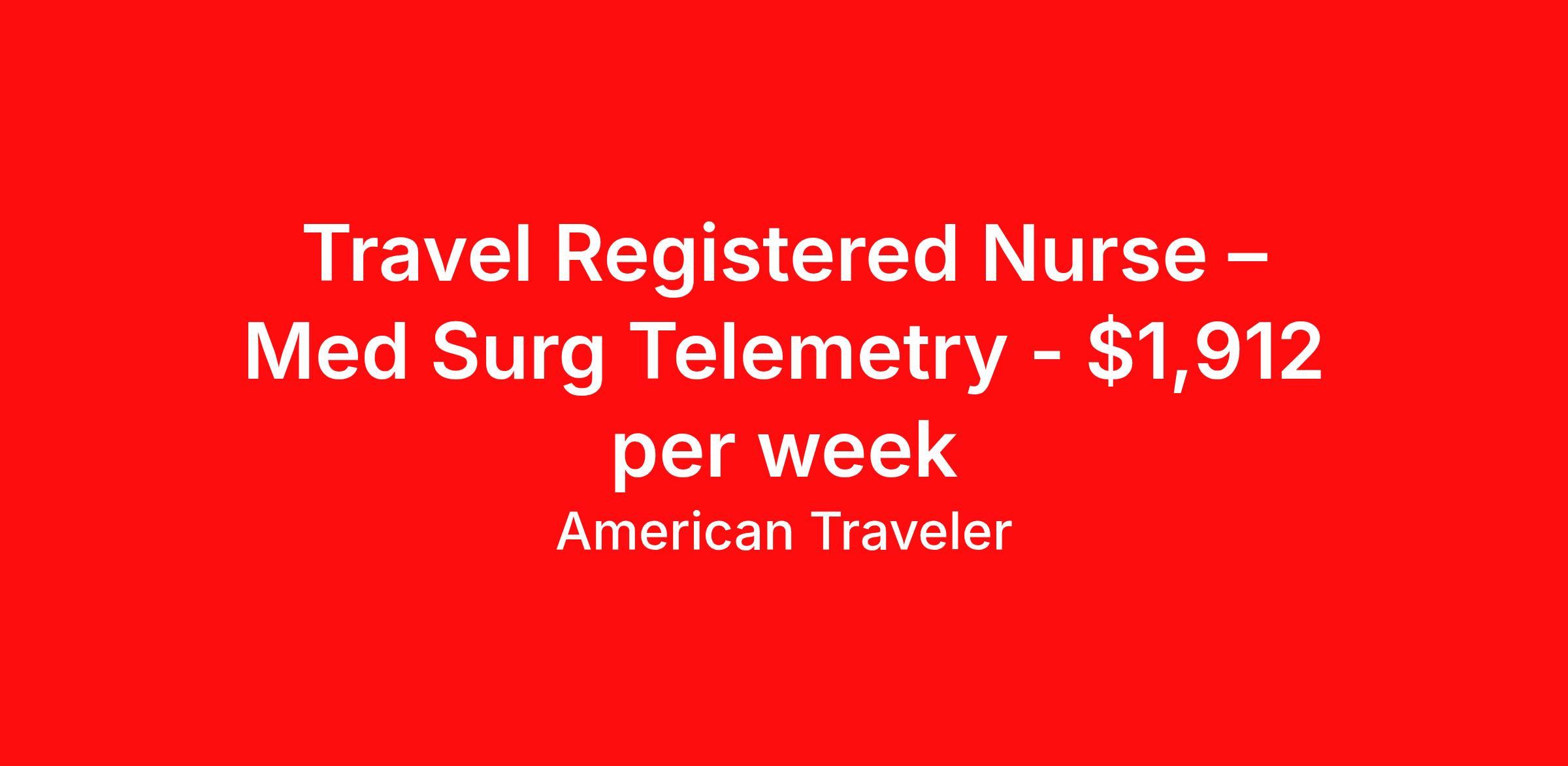 American Traveler is seeking a travel nurse RN Med Surg / Telemetry for a travel nursing job in Tuscaloosa, Alabama. Job Description & Requirements Specialty: Med Surg / Telemetry Discipline: RN Start Date: 04/13/2026 Duration: 13 weeks 36 hours per week Shift: 12 hours, days Employment Type: Travel Assignment Overview Shift: Days, 3x12hrs Hours: 36 hrs/wk Start Date: Apr 13, 2026 Length: 13 weeks Openings: 1 Description American Traveler is seeking an experienced RN for a Med/Surg Telemetry – Heart/Stroke Unit (5 North) position in Tuscaloosa, AL, requiring at least 2 years of experience with 1 year recent in cardiac or neurological nursing. Details 42-bed Heart Failure/Stroke Unit (5 North) dedicated to patients with neurological and cardiac conditions such as congestive heart failure and acute stroke Patient population includes complex neuro-cardiac diagnoses managed in collaboration with cardiologists and neurologists Nurse-to-patient ratio of 1:6 Day shift schedule, 7:00 AM – 7:00 PM Every other weekend required Holiday coverage required Floating to other units and hospitals required EMR: Meditech (experience preferred but not required) 13-week contract Requirements Active AL state RN license or Compact RN license required — no pending or temporary licenses accepted No hits (past or current) on nursing license allowed Current certifications required: BLS (AHA or Red Cross), ACLS, and NIH Stroke Scale (NIHSS) Associate's degree in nursing (ADN) required at minimum Minimum 2 years of RN experience (18 months may be considered), with at least 1 year of recent experience in Med/Surg Telemetry, cardiac, or stroke nursing NURSYS verification required Required documents for consideration: current state or compact RN license, current driver's license, 2 professional references within the last year Additional Information Work alongside a highly skilled nursing team specializing in complex neuro-cardiac conditions, including congestive heart failure and acute stroke Timekeeping system: Centricity Solid navy scrubs required Candidates are required to complete an online cardiac exam after accepting an offer — the exam link is time-sensitive Virtual orientation includes competency-based modules; no pre-start HealthStream modules required Local candidates are accepted with no radius restrictions Parking is available on-site American Traveler Job ID P-681374. Pay package is based on 12 hour shifts and 36 hours per week (subject to confirmation) with tax-free stipend amount to be determined. Posted job title: Travel RN - Med/Surg Tele About American Traveler With over 25 years of experience, American Traveler has established a reputation for outstanding customer service. Our team ensures a smooth, worry-free experience for those starting on or expanding their travel nursing and allied careers. With thousands of travel nursing and allied jobs nationwide, our attentive and approachable recruiters find positions that align perfectly with your career aspirations and personal requirements. American Traveler offers exceptional benefits, including premium medical, dental, vision and life insurance beginning day one of your assignment, generous 401(k) match, substantial housing stipends, and more. Additionally, with 24/7 support and access to our in-house clinicians, you are assured confidence and comfort throughout your assignment. With our team behind you, you can relax and enjoy a rewarding travel career.