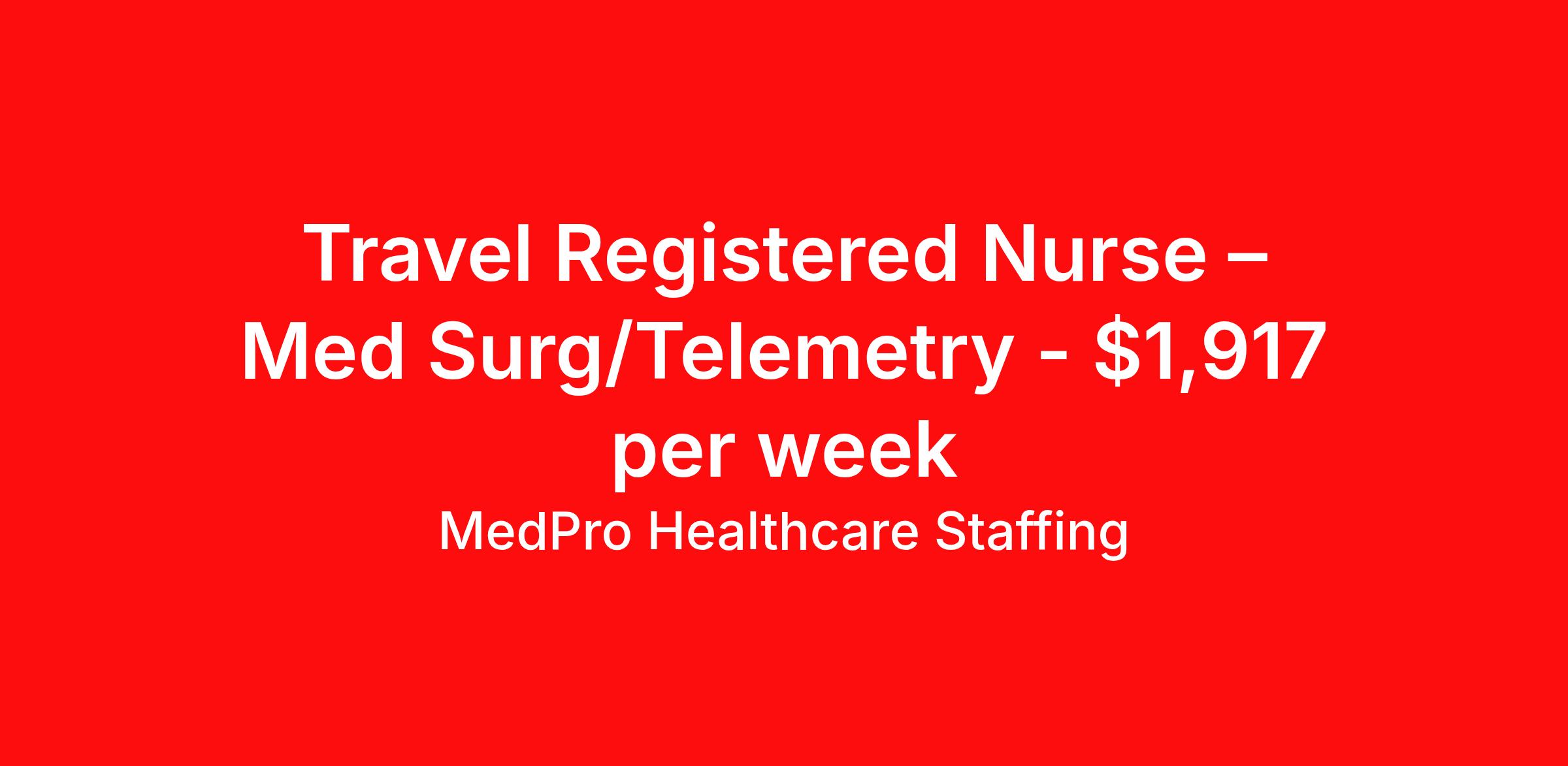 MedPro Healthcare Staffing is seeking a travel nurse RN Med Surg / Telemetry for a travel nursing job in Leonardtown, Maryland. Job Description & Requirements Specialty: Med Surg / Telemetry Discipline: RN Start Date: 04/13/2026 Duration: 13 weeks 36 hours per week Shift: 12 hours, nights Employment Type: Travel MedPro Healthcare Staffing , a Joint Commission-certified staffing agency, is seeking a quality Med-Surg registered nurse (RN) for a travel assignment with one of our top healthcare clients. Requirements Active RN License Degree from accredited nursing program BLS Certifications Eighteen months of recent experience in an Acute Care Med/Surg setting Other requirements to be determined by our client facility Benefits Weekly pay and direct deposit Full coverage of all credentialing fees Private housing or housing allowance Group Health insurance for you and your family Company-paid life and disability insurance Travel reimbursement 401(k) matching Unlimited Referral Bonuses up to $1,000 Duties Responsibilities Med-Surg Nurses (RN) provide care for primarily adult patients before and after surgical procedures; they also attend to those who are being treated with pharmaceuticals to manage illness. Due to the broad range of medical conditions Med/Surg Nurses will encounter, they must be well-versed in a large variety of health conditions. Complete assignments made by physicians. Provide routine treatment and post-surgical care. Assess changes in patient's health status and perform various treatments. Administer medication. Meticulous documentation as to medication and treatment administration to ensure continuity of care between nursing staff, physicians and other treatment team members. About Agency MedPro Healthcare Staffing is a Joint Commission certified provider of contract staffing services. Since 1983, we have placed nursing and allied travelers in top healthcare facilities nationwide. Join us today for your very own MedPro Experience®. If qualified and interested, please call for immediate consideration. MedPro Staffing is an Equal Opportunity Employer. All applicants will be considered for employment without attention to race, color, religion, national origin, age, sex, disability, marital status or veteran status. Key Words: Registered Nurse, RN, Medical-Surgical, Travel Nurse, Contract Nurse, Agency Nurse, Agency RN, RN-MS, RN- Medical Surgical, Travel RN, Contract, Nursing, RN Med-Surg, Travel Nursing *Weekly payment estimates are intended for informational purposes only and include a gross estimate of hourly wages and reimbursements for meal, incidental, and housing expenses. Your recruiter will confirm your eligibility and provide additional details. MedPro Job ID a0Fcx00000EOqBtEAL. Pay package is based on 12 hour shifts and 36 hours per week (subject to confirmation) with tax-free stipend amount to be determined. Posted job title: Med-Surg/Telemetry Registered Nurse Nursing: Med Surg/Tele. About MedPro Healthcare Staffing At MedPro Healthcare Staffing , we believe no one cares more for caregivers than we do. Our mission is simple: you focus on your patients, and we’ll take care of the rest. As a Joint Commission-certified leader in temporary and contract healthcare staffing since 1983, MedPro has proudly connected nursing and allied travelers with top healthcare facilities across the nation. With thousands of job opportunities available nationwide, we make it easy to find assignments that align with your goals and lifestyle. Our on-staff clinical support team—alongside a compassionate group of experienced recruiters—provides hands-on guidance every step of the way. From Day 1 medical benefits and a 401(k) plan to personalized career support, we’re committed to ensuring every professional we serve feels valued, cared for, and empowered to succeed. Guided by a CEO who is a Registered Nurse, MedPro is built on a foundation of clinical insight and genuine compassion for the caregiving community. Through The MedPro Experience® , we deliver travel assignments that are rewarding, memorable, and designed to help you DREAM big, EXPLORE often, and ACHIEVE greatness. Benefits Day 1 medical, dental, and vision benefits for you and your family Weekly pay and direct deposit Unlimited Referral Bonuses starting at $500 On Staff Clinical Support Team Access to nationwide travel assignments MPX Mobile app -24/7 real-time access to jobs, credentials, assignment details, and more Full coverage of all credentialing fees Private housing or housing allowance Tax Free Per Diems, Housing Stipends and Travel Reimbursements Company-paid life and disability insurance Travel reimbursement 401(k) matching Benefits Weekly pay Referral bonus Employee assistance programs