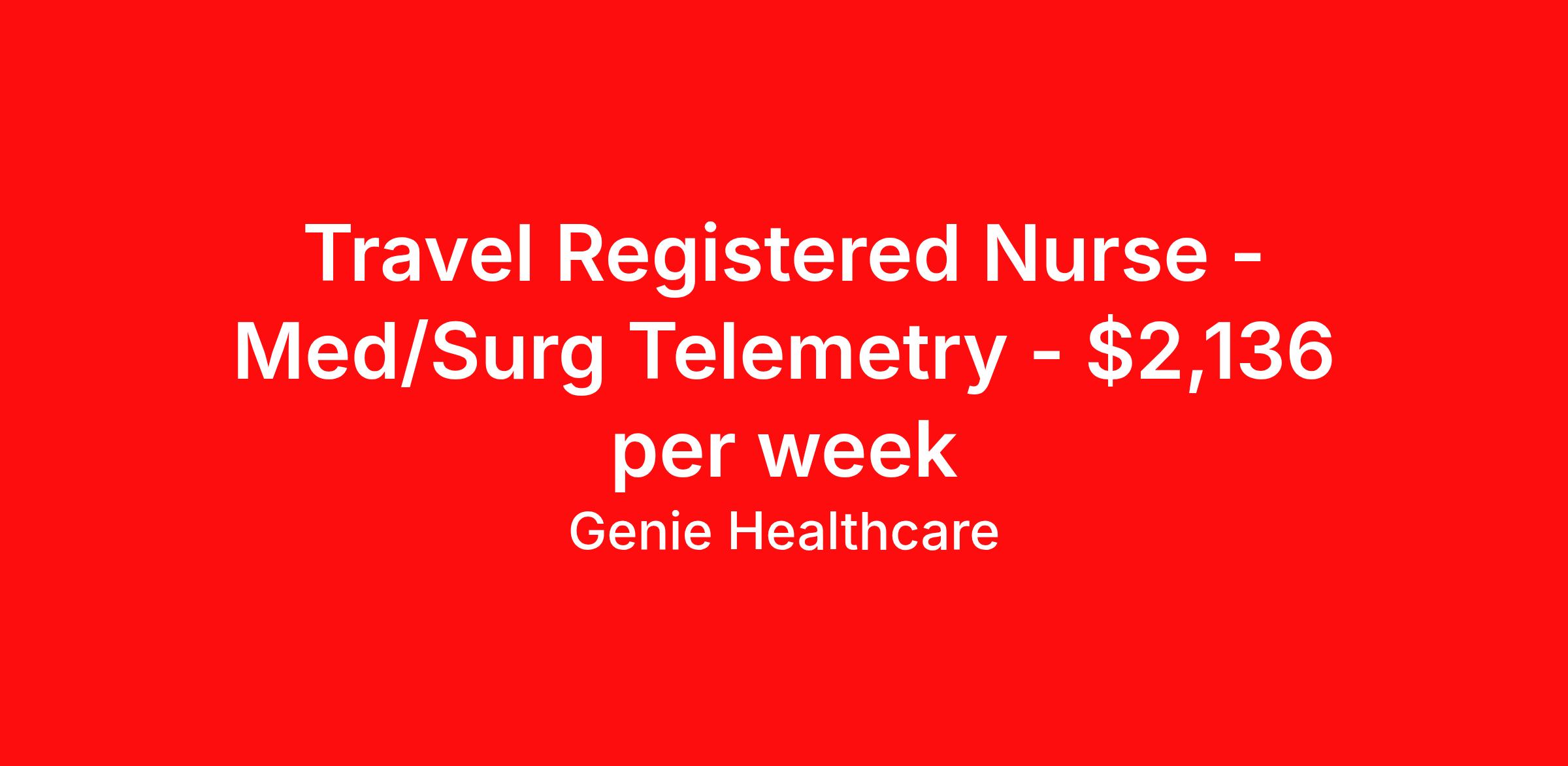 Travel Registered Nurse - Med/Surg Telemetry - $2,136 per week