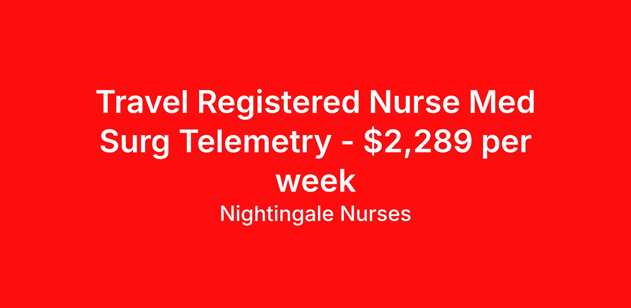 Nightingale Nurses is seeking a travel nurse RN Med Surg / Telemetry for a travel nursing job in Windsor, Vermont. Job Description & Requirements Specialty: Med Surg / Telemetry Discipline: RN Start Date: 05/12/2026 Duration: 13 weeks 36 hours per week Shift: 12 hours, nights Employment Type: Travel About Nightingale Nurses the first name in travel nursing You may not realize it, but as an RN with real world hospital experience, you are legendary. To the lives you’ve helped save, the patients you’ve cared for, and to the hospitals where you’ve done it. And you’re just getting started. Legendary is where Nightingale begins. We’re the first name in travel nursing, representing only the very best RNs. That’s why hospitals prefer us, allowing us to offer exceptional travel nursing assignments all over the US, as well as the highest pay rates and most extensive benefits in the industry. Nightingale facilitates every aspect of your travel nursing assignment, so you can focus on doing what you do best. We want you to grow, explore, and enjoy unrivaled liberty, the freedom to nurse.