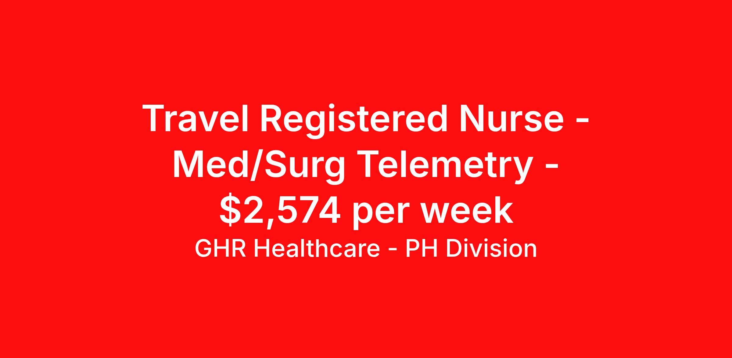 GHR Healthcare - PH Division is seeking a travel nurse RN Med Surg / Telemetry for a travel nursing job in Cleveland, Ohio. Job Description & Requirements Specialty: Med Surg / Telemetry Discipline: RN Start Date: 04/17/2026 Duration: 13 weeks 36 hours per week Shift: 12 hours Employment Type: Travel Planet Healthcare Job ID 76320715. Pay package is based on 12 hour shifts and 36 hours per week (subject to confirmation) with tax-free stipend amount to be determined. About GHR Healthcare - PH Division For over 30 years, GHR Healthcare has been the bridge between healthcare professionals and the facilities that need them nationwide. We're committed to uncovering your ideal fit, supported by GHR's dedication to competitive compensation, transparent communication, and a devoted team that genuinely cares about your career journey. You can trust us to stand by your side as your advocate, confidante, and partner in advancing your career. At GHR, care and consideration are at the heart of everything we do. Visit ghrhealthcare.com to learn more.