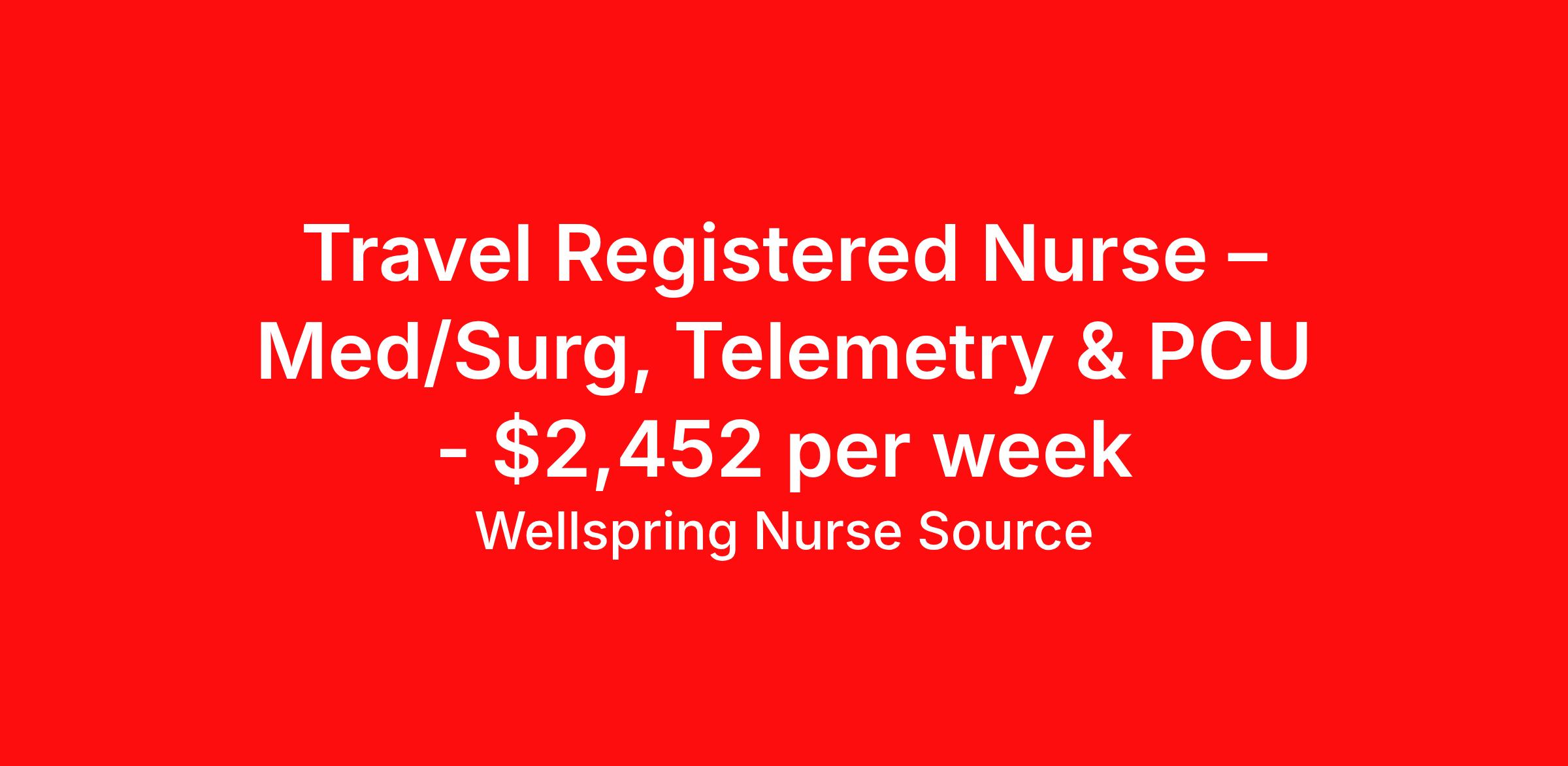 Wellspring Nurse Source is seeking a travel nurse RN Telemetry for a travel nursing job in Claremont, New Hampshire. Job Description & Requirements Specialty: Telemetry Discipline: RN Start Date: 06/01/2026 Duration: 13 weeks 36 hours per week Shift: 12 hours, nights Employment Type: Travel MS/TELE/ICU float. Must have 2 years Med Surg/TELE and ICU experience. This is a very small unit/facility, rural experience is preferred. Previous travel experience – Highly Preferred. ACLS, BLS - AHA required. Wellspring Nurse Source Job ID 36178317. Pay package is based on 12 hour shifts and 36.0 hours per week (subject to confirmation) with tax-free stipend amount to be determined. Posted job title: RN Tele About Wellspring Nurse Source Wellspring is nurse owned and operated which means that we get you, we stand behind you, and we advocate for you. We are 100% committed to helping you find your best job at the best rate. We are unwavering in our commitment to supporting our clinicians on every step of their travel adventure, assisting with everything from onboarding and payroll to on-the-job clinical support with a dedicated Clinician Success Team. You’re not just a number at Wellspring, you’re a valued member of our family. Join us and experience the Wellspring difference.