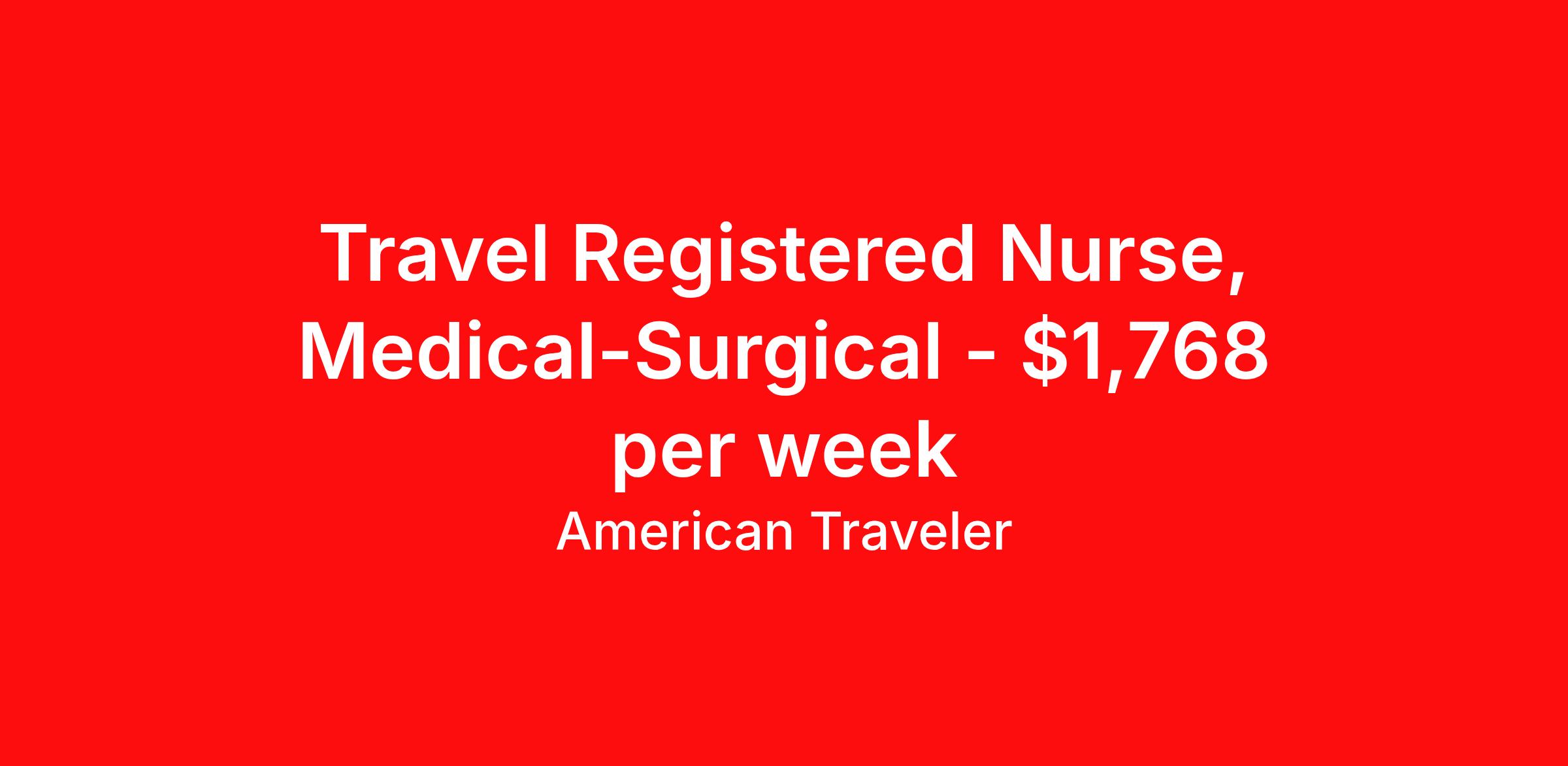 American Traveler is seeking a travel nurse RN Med Surg for a travel nursing job in Springdale, Arkansas. Job Description & Requirements Specialty: Med Surg Discipline: RN Start Date: 03/30/2026 Duration: 13 weeks 36 hours per week Shift: 12 hours, nights Employment Type: Travel Assignment Overview Shift: Nights, 3x12hrs Hours: 36 hrs/wk Start Date: Mar 30, 2026 Length: 13 weeks Openings: 1 Description American Traveler is seeking an experienced RN for a Med/Surg night shift travel position in Springdale, AR, requiring at least 1 year of recent Med/Surg experience and an active AR or compact RN license. Details Med/Surg unit (Floor 10) in a hospital setting Night shift schedule: 6:45 PM – 7:15 AM Every other weekend required 13-week contract Requirements Active AR or compact RN license required Current BLS certification required; ACLS preferred Minimum 1 year of recent Med/Surg RN experience required No gaps in work history of 90 days or more within the past 12 months All certifications must remain valid for at least 30 days beyond the contract start date Valid US driver's license required for consideration US Social Security Number required for consideration Additional Information Candidates must reside more than 50 miles from the facility to be eligible; local travelers will not be considered Candidates who have worked at any CHS facility as permanent staff within the past 2 years are not eligible RTO requests must be less than one week in duration American Traveler Job ID P-679943. Pay package is based on 12 hour shifts and 36 hours per week (subject to confirmation) with tax-free stipend amount to be determined. Posted job title: Travel RN - Med/Surg About American Traveler With over 25 years of experience, American Traveler has established a reputation for outstanding customer service. Our team ensures a smooth, worry-free experience for those starting on or expanding their travel nursing and allied careers. With thousands of travel nursing and allied jobs nationwide, our attentive and approachable recruiters find positions that align perfectly with your career aspirations and personal requirements. American Traveler offers exceptional benefits, including premium medical, dental, vision and life insurance beginning day one of your assignment, generous 401(k) match, substantial housing stipends, and more. Additionally, with 24/7 support and access to our in-house clinicians, you are assured confidence and comfort throughout your assignment. With our team behind you, you can relax and enjoy a rewarding travel career.