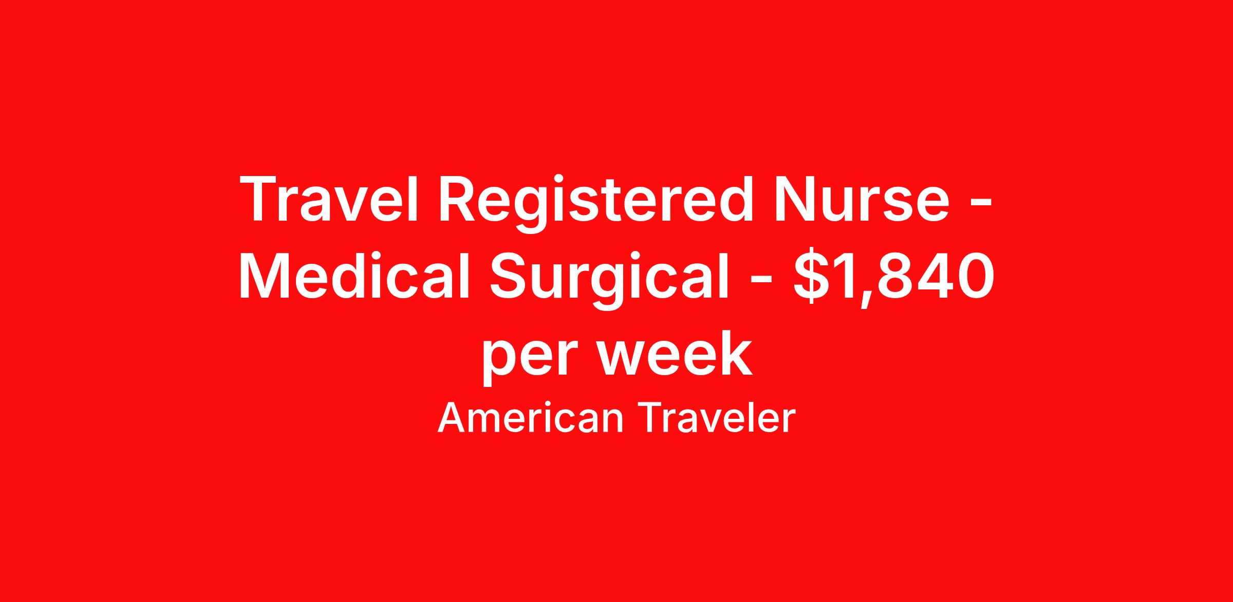 American Traveler is seeking a travel nurse RN Med Surg for a travel nursing job in Sylva, North Carolina. Job Description & Requirements Specialty: Med Surg Discipline: RN Start Date: 04/06/2026 Duration: 13 weeks 36 hours per week Shift: 12 hours, days Employment Type: Travel Assignment Overview Shift: Days, 3x12hrs Hours: 36 hrs/wk Start Date: Apr 6, 2026 Length: 13 weeks Openings: 1 Description American Traveler is seeking an experienced RN for a Medical/Surgical position at an acute care hospital in Sylva, NC, requiring 2 years of Med/Surg experience and active ACLS and BLS certifications. Details 86-bed acute care hospital setting in Sylva, NC Medical/Surgical Combination unit with 24 beds Patient ratio of 1:6 Day shift schedule, 7:00 AM – 7:00 PM Weekend requirement varies — every other or every third weekend No on-call requirements Floating required on a rotation basis EMR: Paragon Requirements Active RN license — NC or compact state license required Current BLS and ACLS certifications required (RQI certifications are not accepted) Minimum 2 years of Med/Surg experience required Medical/Surgical clinical competencies required Social Security number and date of birth required for consideration Must reside 60 or more miles from the facility to qualify for travel rates Additional Information 13-week contract Candidates must not have worked as permanent staff at any LifePoint facility within the last 12 months Candidates cannot be employed full-time elsewhere during the assignment COVID vaccination card required American Traveler Job ID P-684768. Pay package is based on 12 hour shifts and 36 hours per week (subject to confirmation) with tax-free stipend amount to be determined. Posted job title: Travel RN - Med/Surg About American Traveler With over 25 years of experience, American Traveler has established a reputation for outstanding customer service. Our team ensures a smooth, worry-free experience for those starting on or expanding their travel nursing and allied careers. With thousands of travel nursing and allied jobs nationwide, our attentive and approachable recruiters find positions that align perfectly with your career aspirations and personal requirements. American Traveler offers exceptional benefits, including premium medical, dental, vision and life insurance beginning day one of your assignment, generous 401(k) match, substantial housing stipends, and more. Additionally, with 24/7 support and access to our in-house clinicians, you are assured confidence and comfort throughout your assignment. With our team behind you, you can relax and enjoy a rewarding travel career.