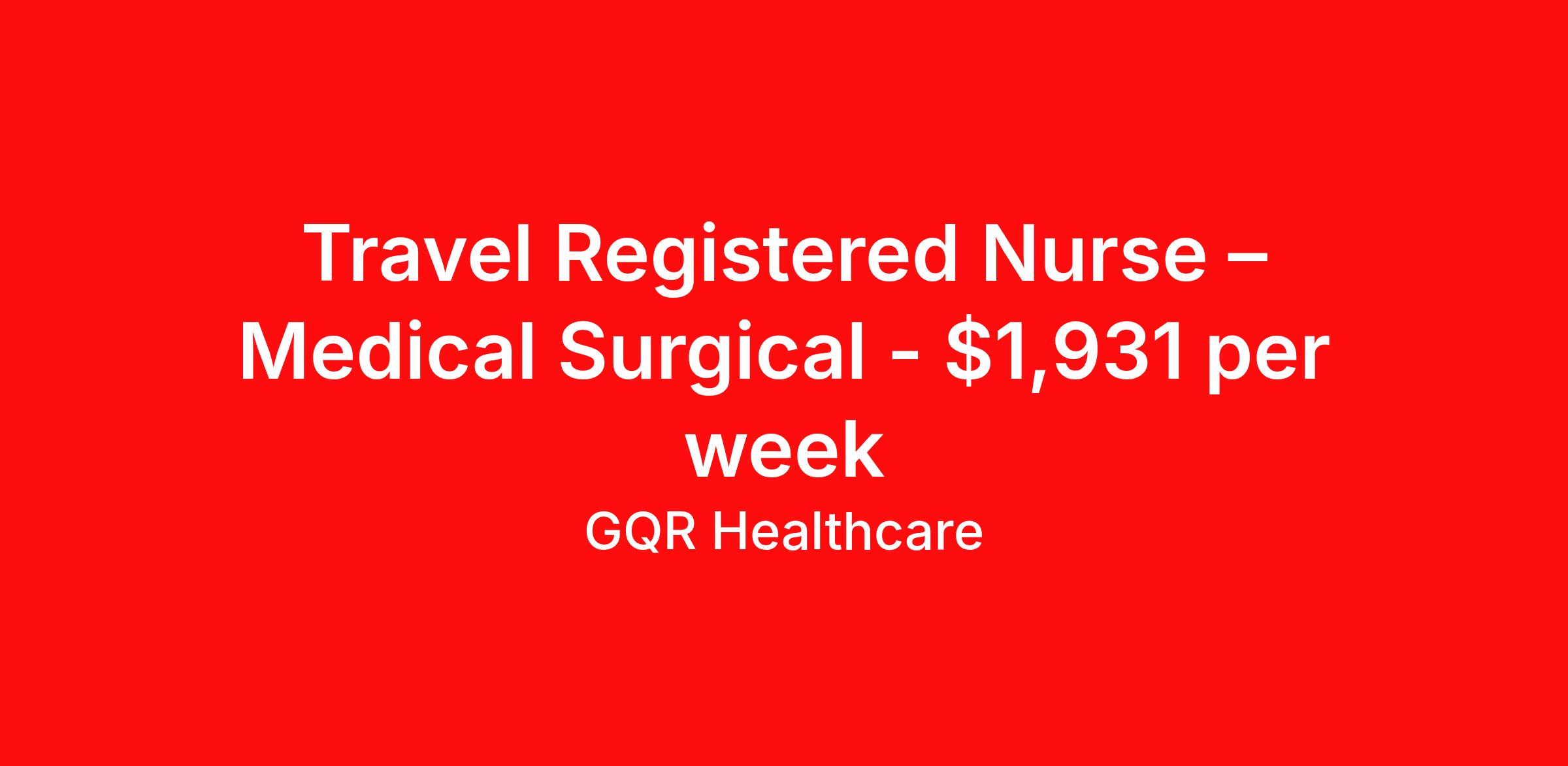 Travel Registered Nurse – Medical Surgical - $1,931 per week