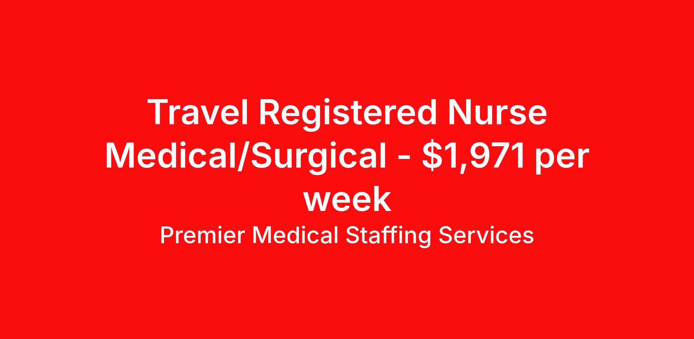 Premier Medical Staffing Services is seeking a travel nurse RN Med Surg / Telemetry for a travel nursing job in Marquette, Michigan. Job Description & Requirements Specialty: Med Surg / Telemetry Discipline: RN Start Date: 04/27/2026 Duration: 13 weeks 36 hours per week Shift: 12 hours Employment Type: Travel Premier Medical Staffing Job ID 626680. Pay package is based on 12 hour shifts and 36 hours per week (subject to confirmation) with tax-free stipend amount to be determined. Posted job title: RN Med/Surg About Premier Medical Staffing Services Premier Medical Staffing Services, LLC is a nationally expanding healthcare staffing firm for healthcare professionals and companies. We understand our clients’ need for highly qualified, expertly trained medical professionals and are passionate about helping clinicians find employment opportunities that fit their personality and needs. Able to accommodate the ever-changing needs of the healthcare landscape, we offer per-diem, contract and direct hire placements to support the unique needs of each industry sector. Premier Medical Staffing Services is Joint Commission Certified, a Military Spouse Employment Partner and is certified as a Women’s Business Enterprise. We are proudly nurse owned.