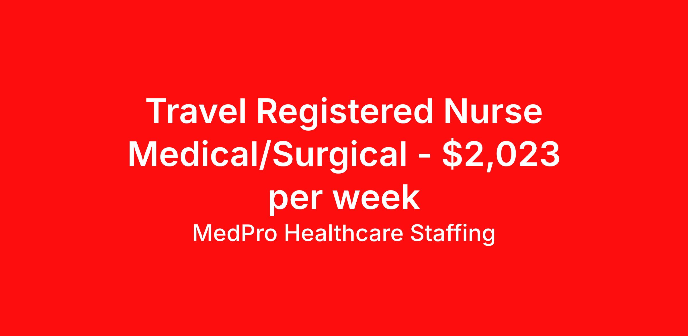 MedPro Healthcare Staffing is seeking a travel nurse RN Med Surg for a travel nursing job in Aiken, South Carolina. Job Description & Requirements Specialty: Med Surg Discipline: RN Start Date: 04/06/2026 Duration: 13 weeks 36 hours per week Shift: 12 hours, days Employment Type: Travel MedPro Healthcare Staffing , a Joint Commission-certified staffing agency, is seeking a quality Med-Surg registered nurse (RN) for a travel assignment with one of our top healthcare clients. Requirements Active RN License Degree from accredited nursing program BLS Certifications Eighteen months of recent experience in an Acute Care Med/Surg setting Other requirements to be determined by our client facility Benefits Weekly pay and direct deposit Full coverage of all credentialing fees Private housing or housing allowance Group Health insurance for you and your family Company-paid life and disability insurance Travel reimbursement 401(k) matching Unlimited Referral Bonuses up to $1,000 Duties Responsibilities Med-Surg Nurses (RN) provide care for primarily adult patients before and after surgical procedures; they also attend to those who are being treated with pharmaceuticals to manage illness. Due to the broad range of medical conditions Med/Surg Nurses will encounter, they must be well-versed in a large variety of health conditions. Complete assignments made by physicians. Provide routine treatment and post-surgical care. Assess changes in patient's health status and perform various treatments. Administer medication. Meticulous documentation as to medication and treatment administration to ensure continuity of care between nursing staff, physicians and other treatment team members. About Agency MedPro Healthcare Staffing is a Joint Commission certified provider of contract staffing services. Since 1983, we have placed nursing and allied travelers in top healthcare facilities nationwide. Join us today for your very own MedPro Experience®. If qualified and interested, please call for immediate consideration. MedPro Staffing is an Equal Opportunity Employer. All applicants will be considered for employment without attention to race, color, religion, national origin, age, sex, disability, marital status or veteran status. Key Words: Registered Nurse, RN, Medical-Surgical, Travel Nurse, Contract Nurse, Agency Nurse, Agency RN, RN-MS, RN- Medical Surgical, Travel RN, Contract, Nursing, RN Med-Surg, Travel Nursing *Weekly payment estimates are intended for informational purposes only and include a gross estimate of hourly wages and reimbursements for meal, incidental, and housing expenses. Your recruiter will confirm your eligibility and provide additional details. MedPro Job ID a0Fcx00000GwBoHEAV. Pay package is based on 12 hour shifts and 36 hours per week (subject to confirmation) with tax-free stipend amount to be determined. Posted job title: Med-Surg Registered Nurse Nursing: Medical Surgical. About MedPro Healthcare Staffing At MedPro Healthcare Staffing , we believe no one cares more for caregivers than we do. Our mission is simple: you focus on your patients, and we’ll take care of the rest. As a Joint Commission-certified leader in temporary and contract healthcare staffing since 1983, MedPro has proudly connected nursing and allied travelers with top healthcare facilities across the nation. With thousands of job opportunities available nationwide, we make it easy to find assignments that align with your goals and lifestyle. Our on-staff clinical support team—alongside a compassionate group of experienced recruiters—provides hands-on guidance every step of the way. From Day 1 medical benefits and a 401(k) plan to personalized career support, we’re committed to ensuring every professional we serve feels valued, cared for, and empowered to succeed. Guided by a CEO who is a Registered Nurse, MedPro is built on a foundation of clinical insight and genuine compassion for the caregiving community. Through The MedPro Experience® , we deliver travel assignments that are rewarding, memorable, and designed to help you DREAM big, EXPLORE often, and ACHIEVE greatness. Benefits Day 1 medical, dental, and vision benefits for you and your family Weekly pay and direct deposit Unlimited Referral Bonuses starting at $500 On Staff Clinical Support Team Access to nationwide travel assignments MPX Mobile app -24/7 real-time access to jobs, credentials, assignment details, and more Full coverage of all credentialing fees Private housing or housing allowance Tax Free Per Diems, Housing Stipends and Travel Reimbursements Company-paid life and disability insurance Travel reimbursement 401(k) matching Benefits Weekly pay Referral bonus Employee assistance programs