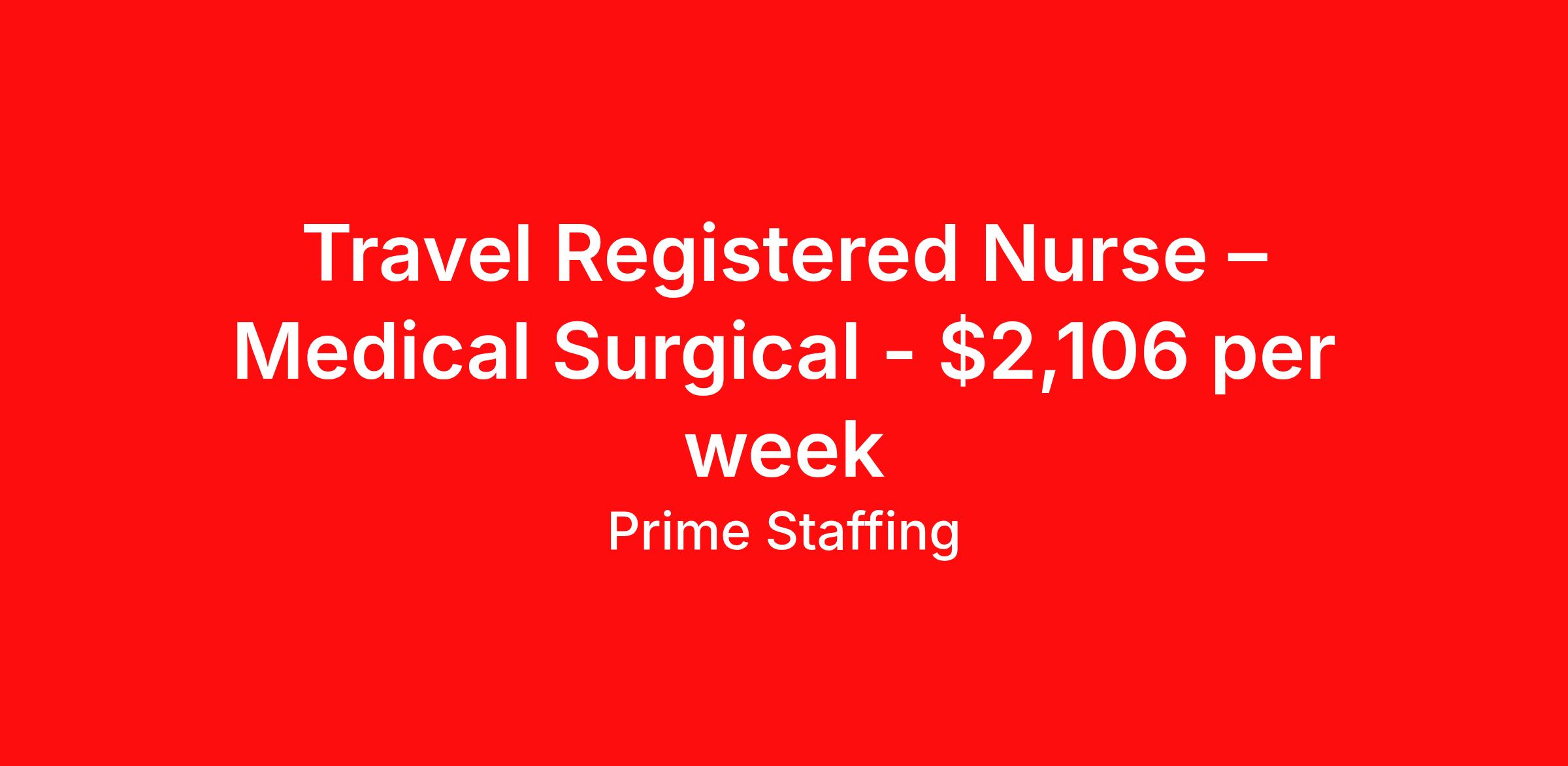 Travel Registered Nurse – Medical Surgical - $2,106 per week
