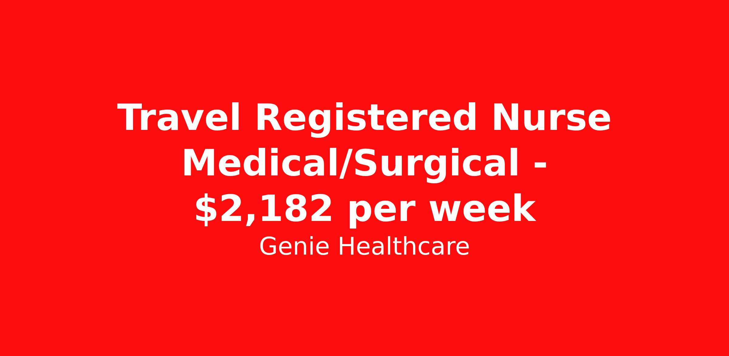 Genie Healthcare is seeking a travel nurse RN Med Surg for a travel nursing job in Utica, New York. Job Description & Requirements Specialty: Med Surg Discipline: RN Start Date: 04/13/2026 Duration: 13 weeks 36 hours per week Shift: 12 hours, nights Employment Type: Travel Genie Healthcare is looking for a RN to work in MedSurg for a 12.71 weeks travel assignment located in Utica, NY for the Shift (3x12 nights, 19:00:00-07:00:00, 12.00-3). Pay and benefits packages are estimated based on client bill rate at time the job was posted. These rates are subject to change. Exact pay and benefits vary based on several things, including, but not limited to, guaranteed hours, client changes in bill rate, experience, etc. Benefits: Medical Insurance, Dental Insurance, Vision Insurance, 401(k) with company matching (50% up to 6% of what you contribute) Genie Healthcare Job ID 17974954. Pay package is based on 12 hour shifts and 36.0 hours per week (subject to confirmation) with tax-free stipend amount to be determined. Posted job title: RN:MedSurg,19:00:00-07:00:00 About Genie Healthcare Genie Healthcare is one of the fastest growing Nurse Travel Agencies in the USA. Genie serves hundreds of facilities and has over 4000 current travel RN contracts open at any given time. Genie provides travel RN’s flexibility, support, top pay scale, housing and the 1 rated, multi-state health insurance coverage. Genie Healthcare carries with it a commitment to providing a comprehensive level of service and quality care. Growing from a small team of eager recruiters to a company with satisfied clients in nearly every corner of the nation, delivering excellence in patient and customer care is the key to Genie’s success. The management team has 20 years of experience in workforce solutions and staffing in medical and non-medical fields, roles ranging from Clerical job to Cardiologist to software developer to CEO.