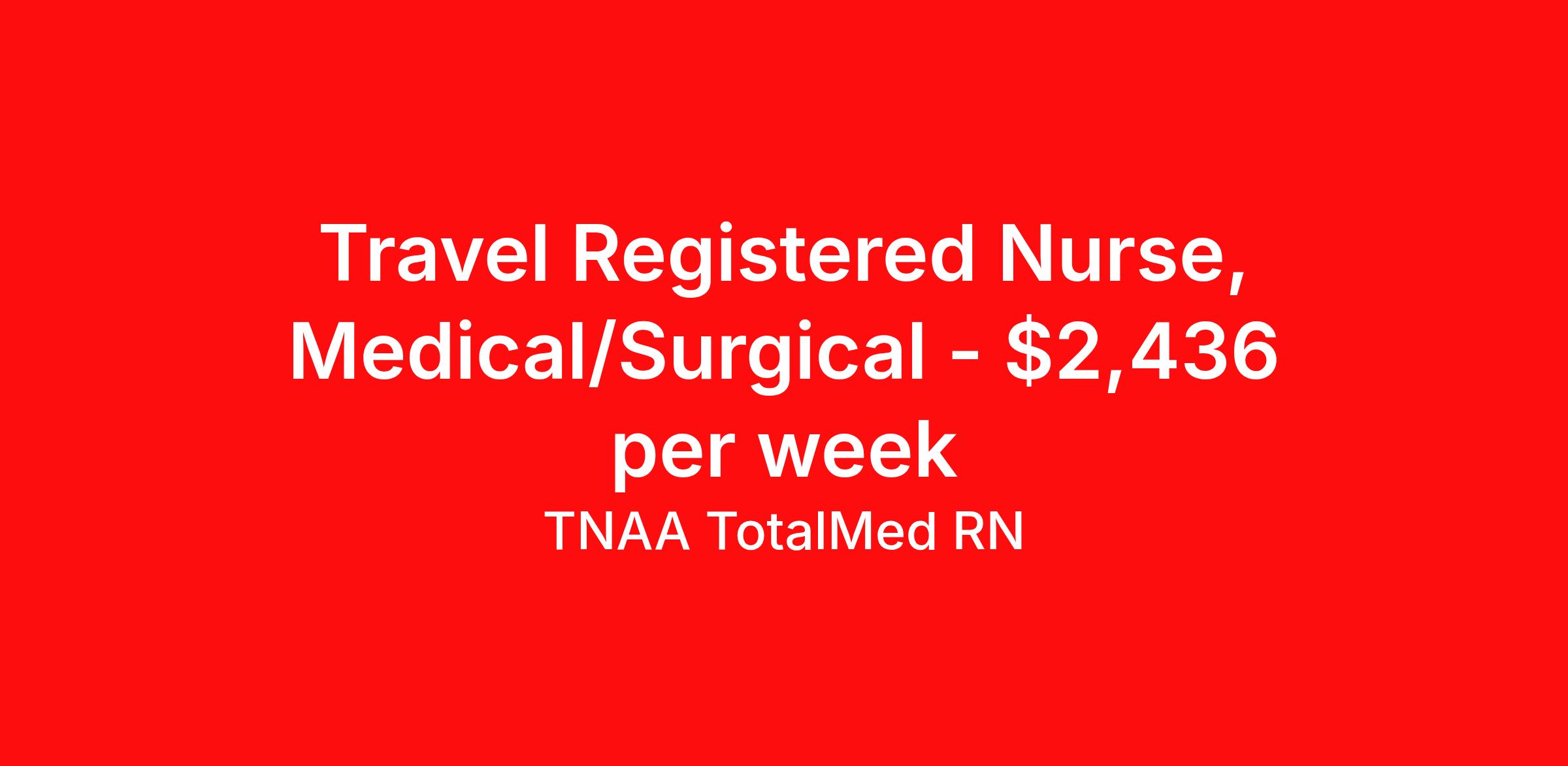 TNAA TotalMed RN is seeking a travel nurse RN Med Surg for a travel nursing job in Marquette, Michigan. Job Description & Requirements Specialty: Med Surg Discipline: RN Start Date: 04/26/2026 Duration: 13 weeks 36 hours per week Shift: 12 hours, nights Employment Type: Travel We're looking for Medical Surgical RNs for an immediate travel nurse opening in Marquette, MI. The right RN should have 1-2 years recent acute care experience. Read below for more requirements. As a MedSurg RN, you will conduct patient assessments and prioritize data collection based on patients' immediate conditions or needs. MedSurg RNs perform ongoing assessments and appropriate treatments as ordered by a physician. Documenting patient findings and providing education and support to patients' families is essential to this travel nurse position. As a Medical Surgical Travel Nurse, you should be prepared to perform the following tasks: Provide bedside care for a variety of patients, including pre- and post-op patients. Prepare, administer and record prescribed medication, reporting any adverse reactions to treatment. Change dressings, insert catheters and start IVs. Prepares equipment and aids physician during examination and treatment of patient. Educates patients on surgical procedures. Participates in discharge planning and initiates patient education plan as prescribed by physician. Medical Surgical Travel Nurses should be able to stand and walk for long periods of time, as well as bend, lean and stoop without difficulty. RNs should be able to easily lift 20 pounds. Moving or lifting of patients may require lifting of up to 50 pounds at times. RNs will work in a fast-paced environment treating patients that may be confused, agitated, and/or uncooperative. Requirements*: BLS, ACLS, 2 Years * Additional certifications may be required before beginning an assignment. TotalMed Travel Job ID 1396728. Pay package is based on 12 hour shifts and 36 hours per week (subject to confirmation) with tax-free stipend amount to be determined. Posted job title: Medical/Surgical - MedSurg RN - Travel Nurse About TNAA TotalMed RN TotalMed is a Top Ten, travel nursing and healthcare staffing agency with the mission of igniting purpose in healthcare. The organization staffs nurses, therapists, pharmacists, and other clinicians of all specialties in all 50 states. They offer local and travel jobs and match caregivers with the right organization to assist both facilities and patients. As an organization, they focus on putting highly-skilled staff into facilities to ensure adequate staffing for a better patient experience. TotalMed specializes in recruiting and placing healthcare professionals in travel, PRN, and permanent positions across the country in Nursing and Allied Health. Throughout 2020, the organization filled roles at even the most short-staffed facilities during the most challenging time in healthcare. By matching the right travel healthcare professional with the right organization, TotalMed continues to offer a lifeline to facilities and their patients. Benefits Weekly pay Guaranteed Hours Continuing Education 401k retirement plan Sick pay Wellness and fitness programs Referral bonus Employee assistance programs Medical benefits Dental benefits Vision benefits Benefits start day 1