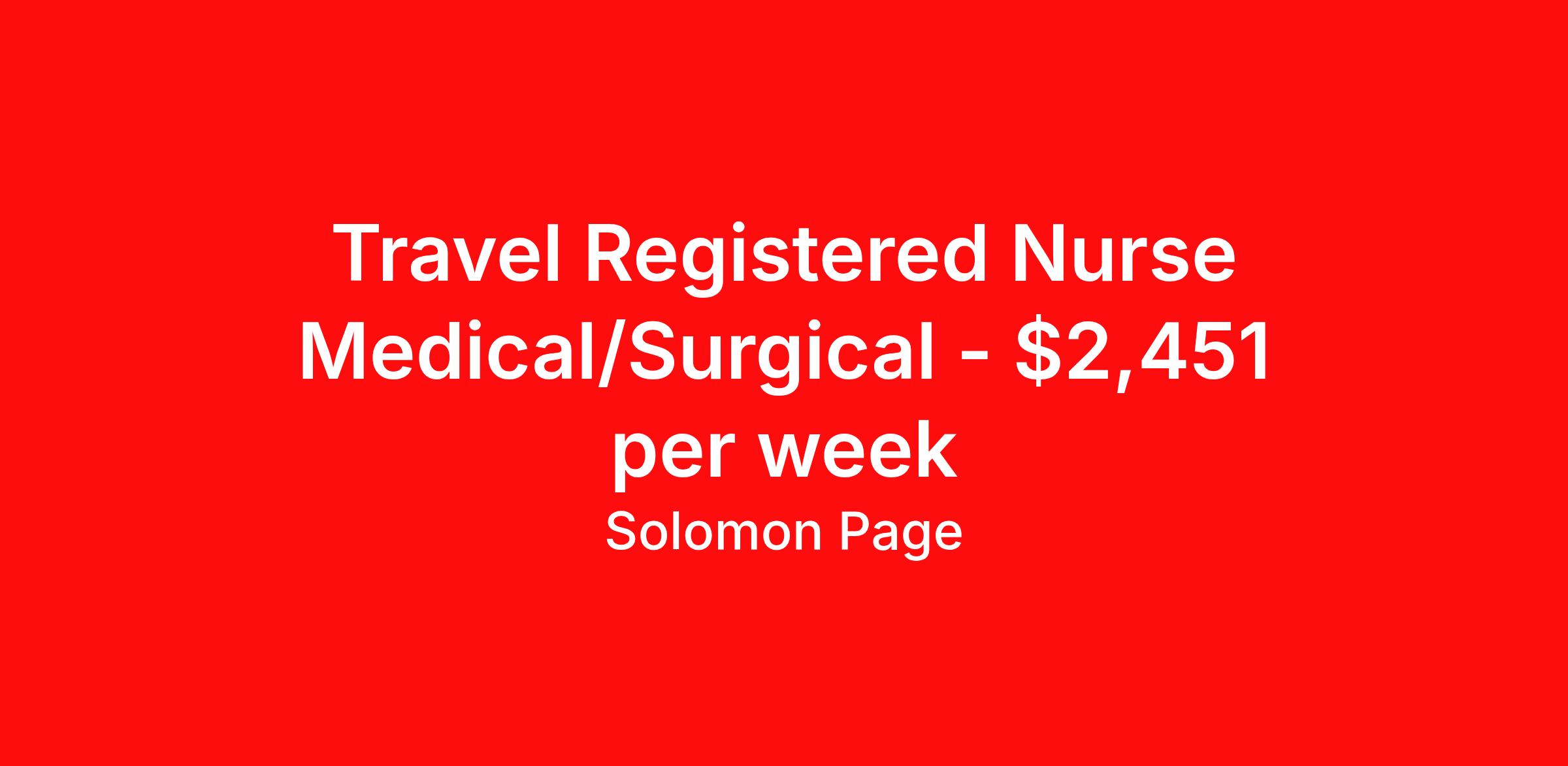 Travel Registered Nurse Medical/Surgical - $2,451 per week