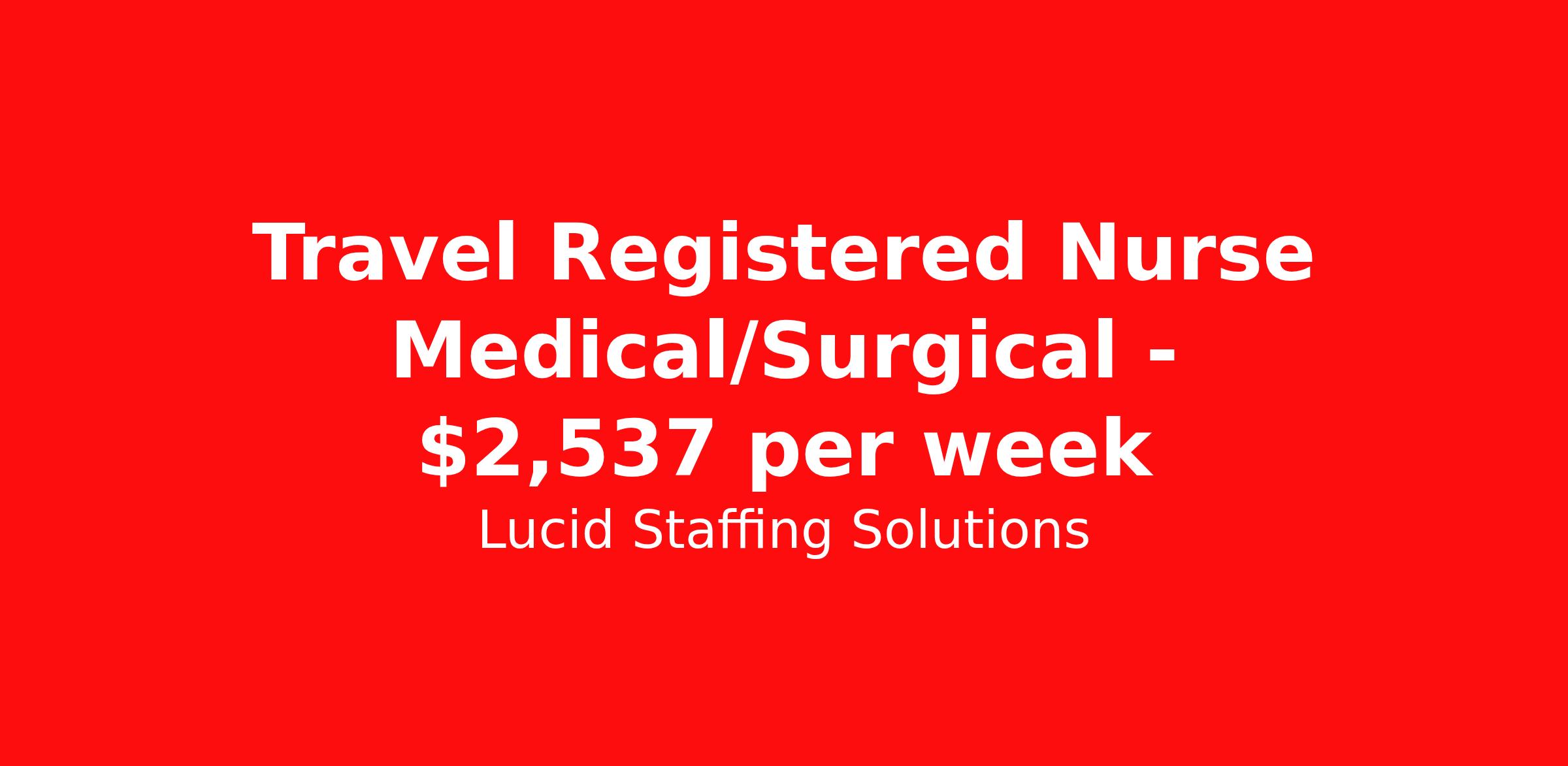 Lucid Staffing Solutions is seeking a travel nurse RN Med Surg / Telemetry for a travel nursing job in Marquette, Michigan. Job Description & Requirements Specialty: Med Surg / Telemetry Discipline: RN Duration: 13 weeks 36 hours per week Shift: 12 hours Employment Type: Travel Job Description Position: Travel Registered Nurse (RN) with experience in MS Location: Marquette, Michigan Shift: 12hr Weekly Gross: $2536.96 Lucid Staffing Solutions was created by former healthcare workers who lived the short staffing, the chaotic workflows, and the nonstop pressure that comes with patient care. We built an agency powered by real clinical experience, kept simple and supportive, so you never have to guess whether the people guiding you actually know what they’re talking about. Minimum Requirements: Active license as a Registered Nurse (RN) Licensed in Michigan (If applicable) or compact eligible Two years of recent MS experience Active BLS Why Lucid Works for Travelers Paid Weekly: Stipends pushed to GSA limits whenever possible $500 Travel Reimbursement: Paid at the start of each assignment Clinician-Led Team: Recruiters and Account Managers with real clinical experience In-House Compliance: fast updates, real communication, and none of the delays that come with outsourced vendors. Health Coverage Options: Multiple medical plans plus dental, vision, and workers compensation 401(k) Match: 4 percent match after 6 months License & Certification Reimbursement: We help cover the cost of staying compliant Liability Insurance: Included automatically Referral Bonuses: $500 per referral, $750 after five referrals Ready to start your journey? Apply today to connect with a Clinician-Recruiter! Lucid Staffing Solutions Job ID 37716. Pay package is based on 12 hour shifts and 36 hours per week (subject to confirmation) with tax-free stipend amount to be determined. Posted job title: MS About Lucid Staffing Solutions Clinician Owned & Operated At Lucid Staffing Solutions, we do things differently—because we’ve been in your shoes. Founded by actual healthcare professionals, Lucid was built to fix the issues we experienced as travelers. We know what makes a great assignment: competitive pay, seamless onboarding, honest recruiters, and most importantly—working with a team that truly sees and supports you. Our entire team is made up of former clinicians who understand the demands of the job and what travelers truly need to succeed. We offer some of the highest paying allied health and nursing contracts across the country, along with some amazing benefits & perks. Whether you're chasing freedom, flexible schedules, bigger paychecks, or your next adventure, Lucid helps you get there—with real support, real respect , and real healthcare experts. Benefits Dental benefits Medical benefits Vision benefits