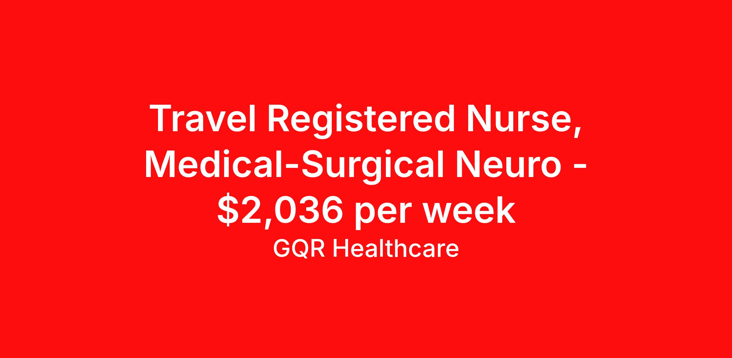 Travel Registered Nurse, Medical-Surgical Neuro - $2,036 per week