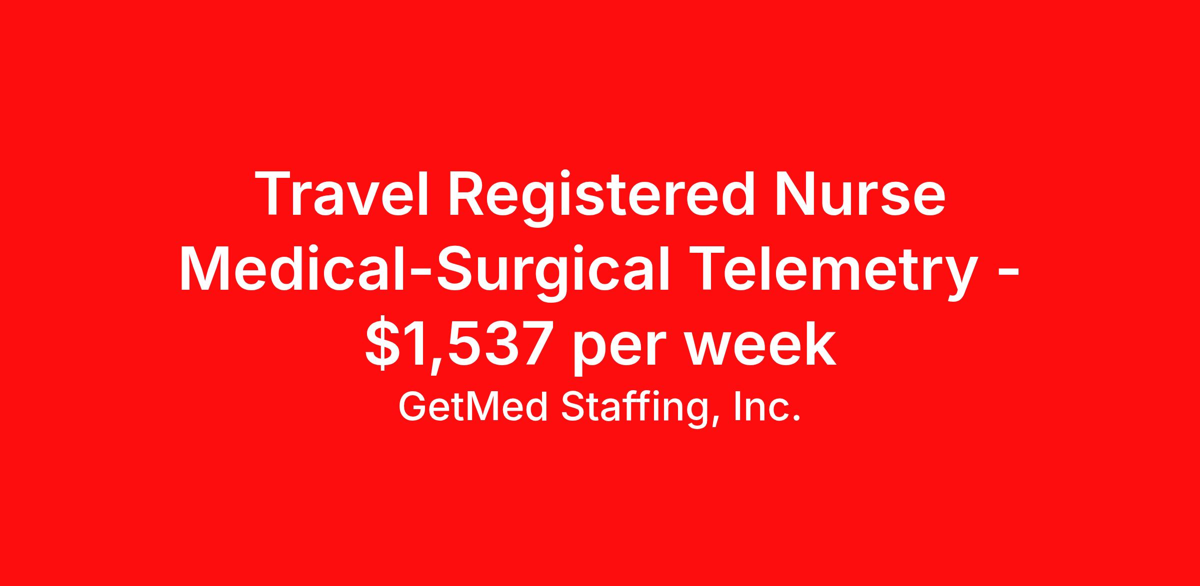 GetMed Staffing, Inc. is seeking a travel nurse RN Telemetry for a travel nursing job in Gallatin, Tennessee. Job Description & Requirements Specialty: Telemetry Discipline: RN Start Date: 04/20/2026 Duration: 13 weeks 36 hours per week Shift: 12 hours, nights Employment Type: Travel GetMed Staffing is searching for a strong Telemetry RN to assist our traveler-friendly client. A minimum of 1-2 years of experience is required. Traveling with GetMed Staffing offers the unique opportunity to gain diverse experiences, both personally and professionally. Gain experience that matters. GetMed Staffing, Inc. Job ID 36199659. Pay package is based on 12 hour shifts and 36.0 hours per week (subject to confirmation) with tax-free stipend amount to be determined. Posted job title: RN:Telemetry,19:00:00-07:00:00 About GetMed Staffing, Inc. We are a diversity owned company, specializing in healthcare recruiting services. We truly understand how important a healthcare travelers' relationship is with their recruiter, as well as our relationship is with our healthcare facilities. We recognize that the needs of our healthcare travelers can vary, and therefore we provide the personalized touch necessary to ensure a successful travel assignment each and every time. Our healthcare facilities and clients benefit from us putting our healthcare travelers first. GetMed Staffing is excited to be a leader within the industry by focusing on providing healthcare travelers with more choices and possibilities as they plan for their next healthcare travel assignment. Benefits Life insurance Medical benefits Dental benefits Vision benefits 401k retirement plan