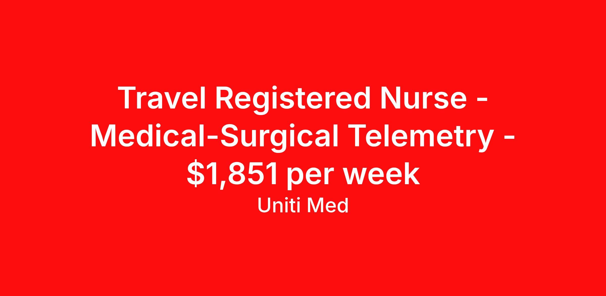 Travel Registered Nurse - Medical-Surgical Telemetry - $1,851 per week