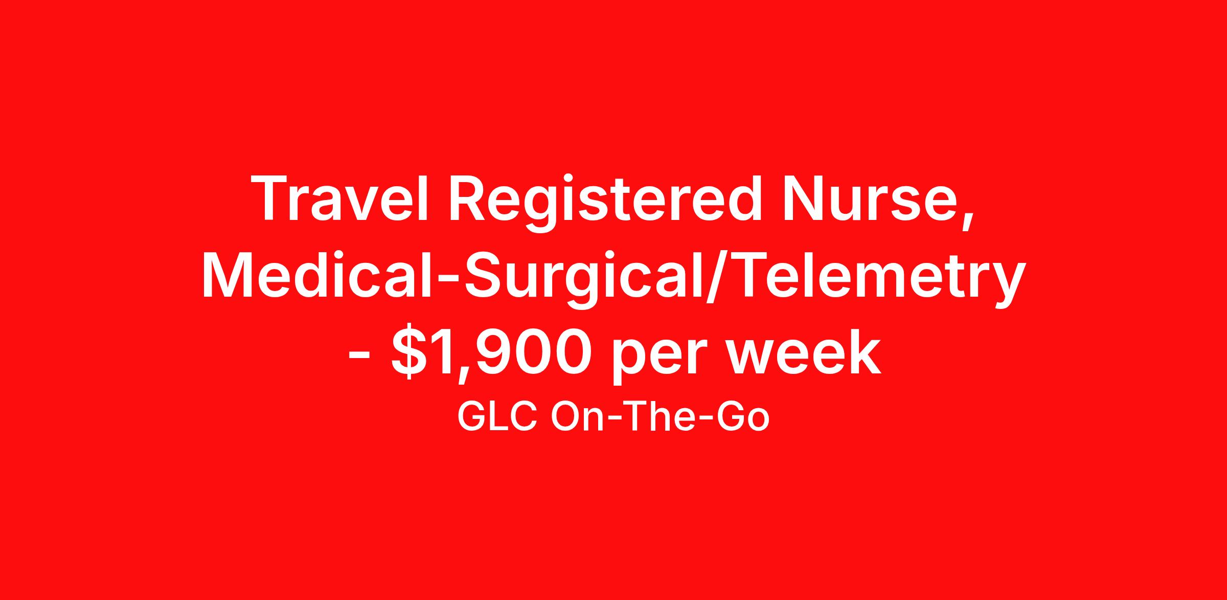 Travel Registered Nurse, Medical-Surgical/Telemetry - $1,900 per week