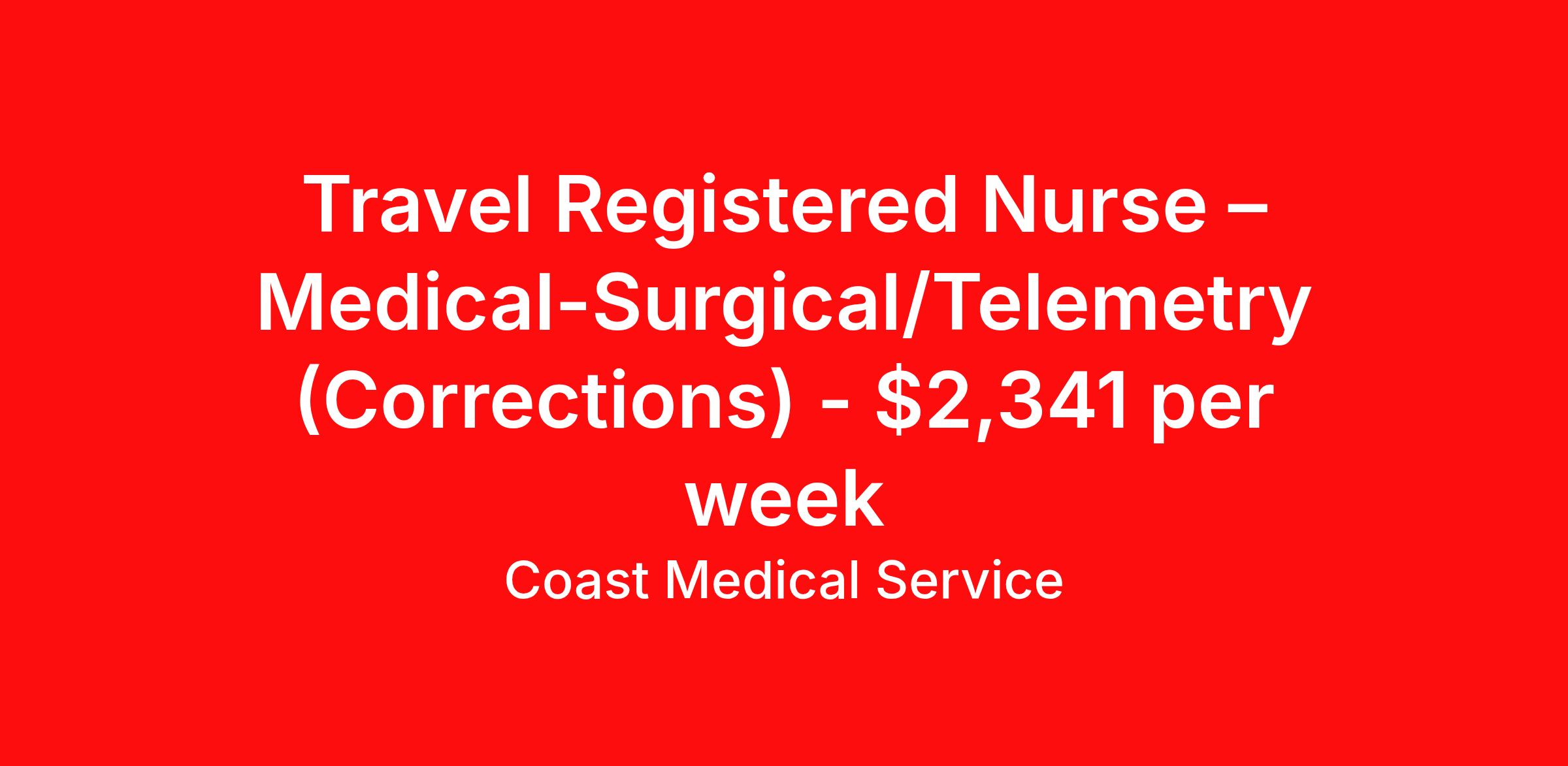 Travel Registered Nurse – Medical-Surgical/Telemetry (Corrections) - $2,341 per week