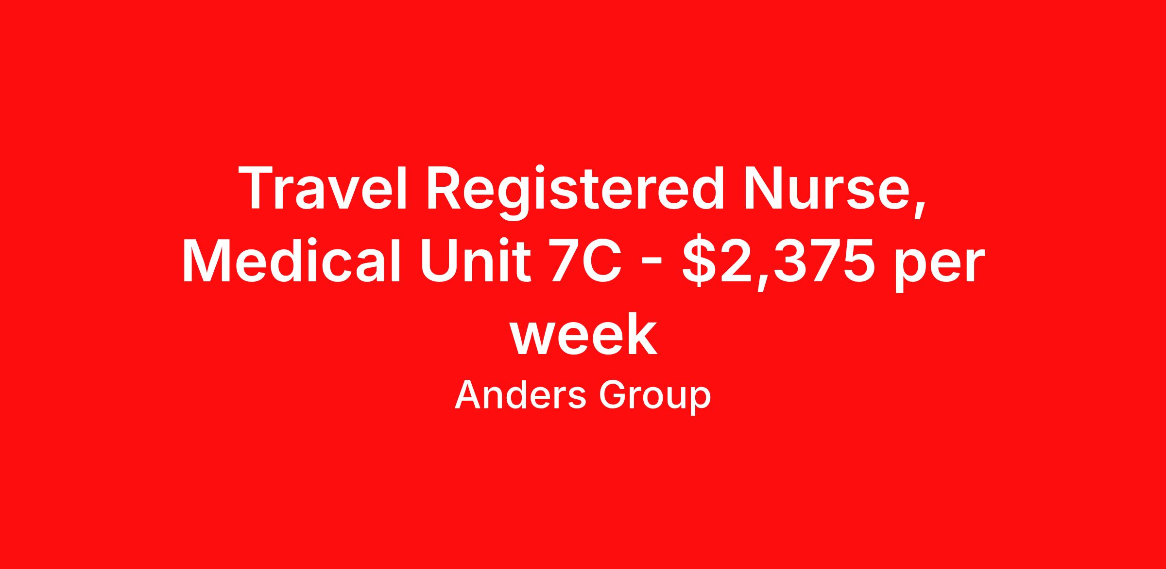 Travel Registered Nurse, Medical Unit 7C - $2,375 per week