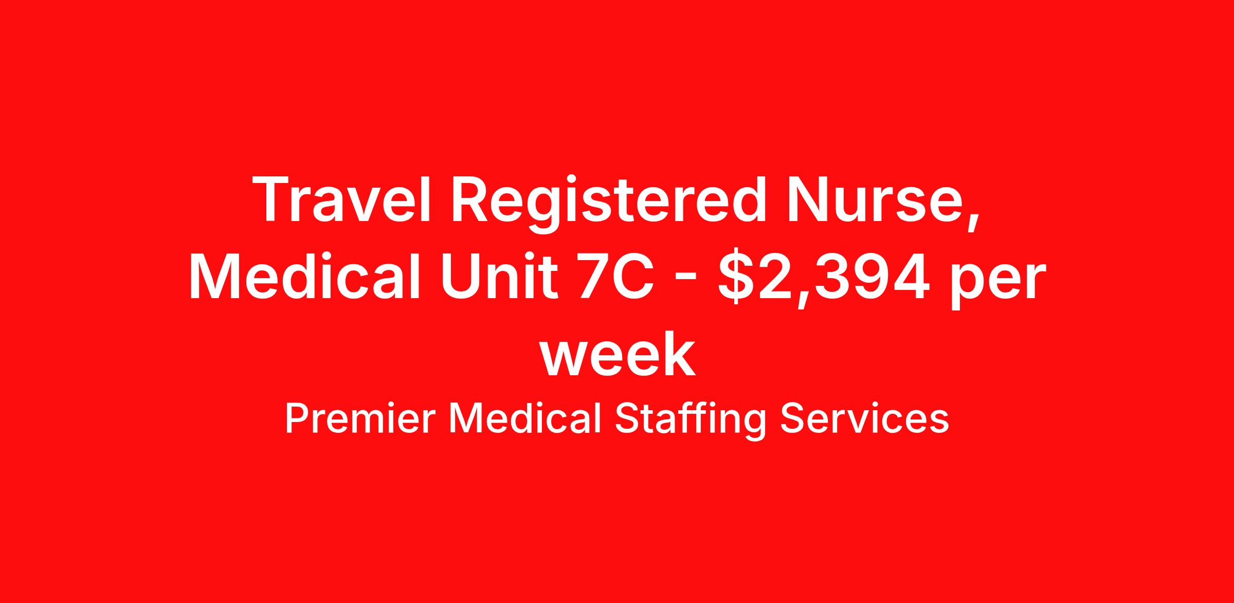 Premier Medical Staffing Services is seeking a travel nurse RN Med Surg for a travel nursing job in Peoria, Illinois. Job Description & Requirements Specialty: Med Surg Discipline: RN Start Date: 04/06/2026 Duration: 12 weeks 36 hours per week Shift: 12 hours Employment Type: Travel Premier Medical Staffing Job ID 619509. Pay package is based on 12 hour shifts and 36 hours per week (subject to confirmation) with tax-free stipend amount to be determined. Posted job title: RN Med/Surg About Premier Medical Staffing Services Premier Medical Staffing Services, LLC is a nationally expanding healthcare staffing firm for healthcare professionals and companies. We understand our clients’ need for highly qualified, expertly trained medical professionals and are passionate about helping clinicians find employment opportunities that fit their personality and needs. Able to accommodate the ever-changing needs of the healthcare landscape, we offer per-diem, contract and direct hire placements to support the unique needs of each industry sector. Premier Medical Staffing Services is Joint Commission Certified, a Military Spouse Employment Partner and is certified as a Women’s Business Enterprise. We are proudly nurse owned.