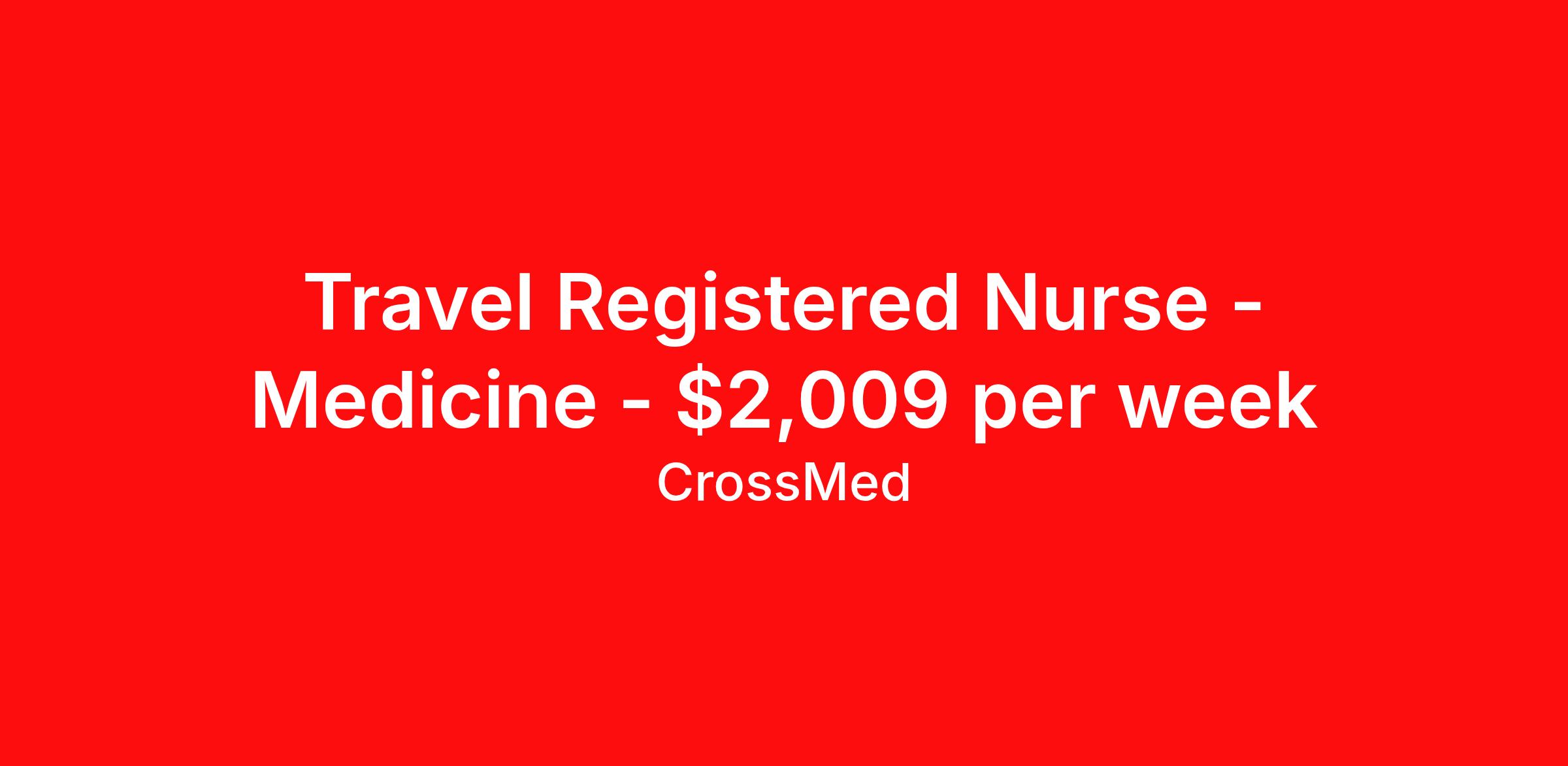 Travel Registered Nurse - Medicine - $2,009 per week